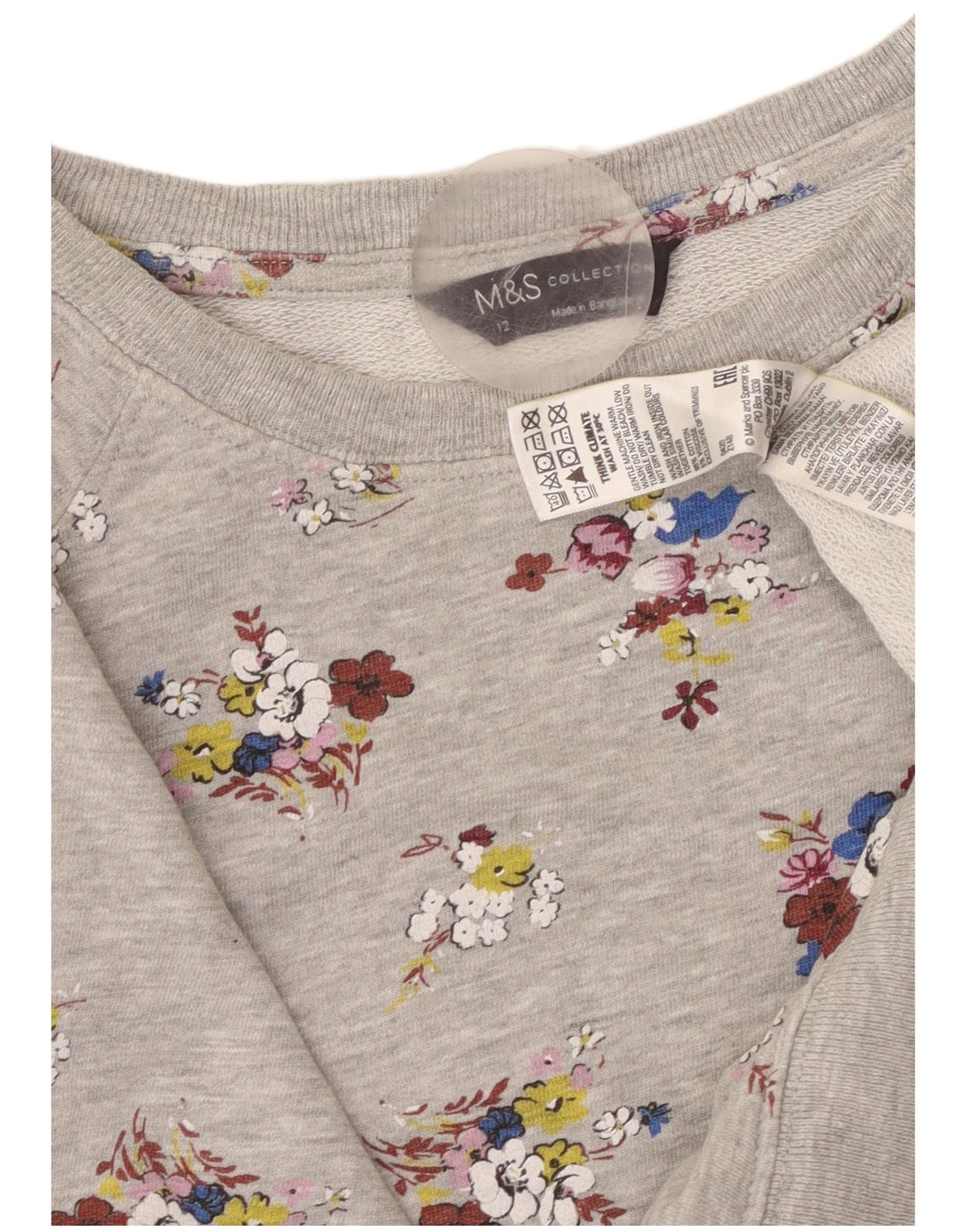 MARKS & SPENCER Womens Crop Sweatshirt Jumper UK 12 Medium Grey Floral