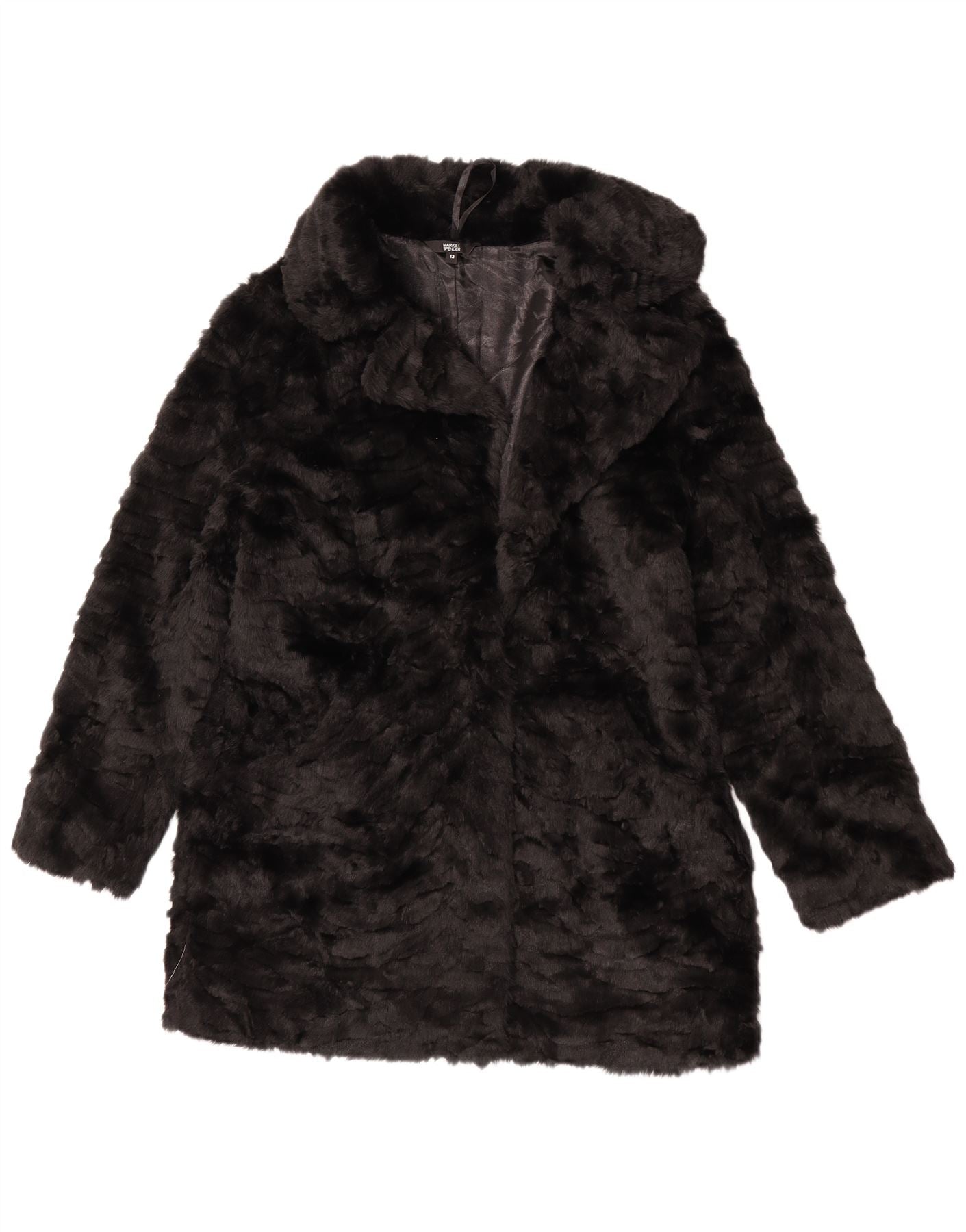 Marks & Spencer Dame imiteret Pelsjakke UK 12 Medium Sort Modacryl