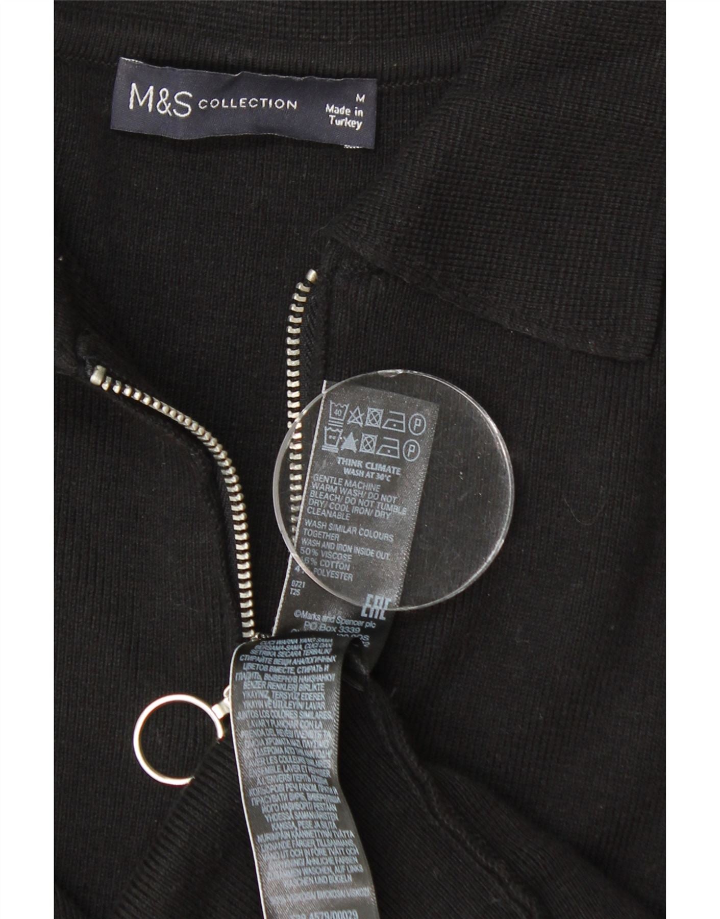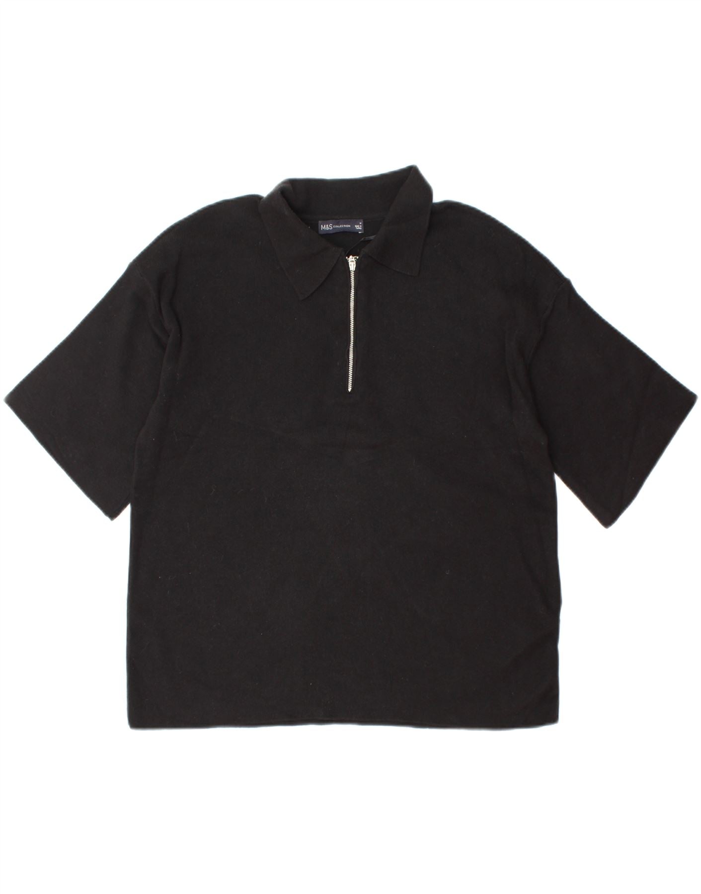 MARKS & SPENCER Womens Polo Shirt UK 14 Medium Black Viscose