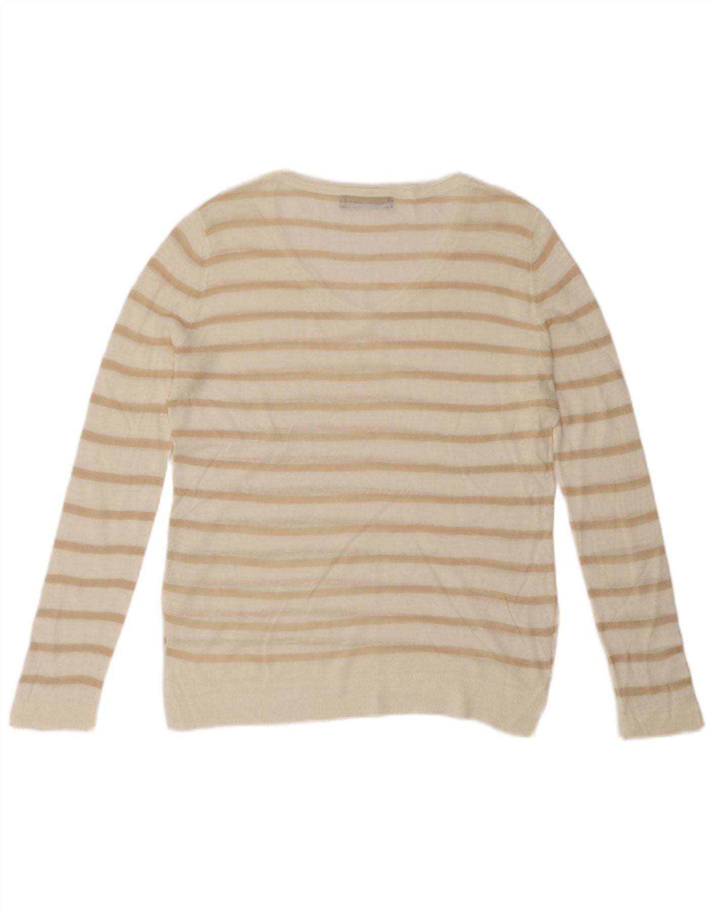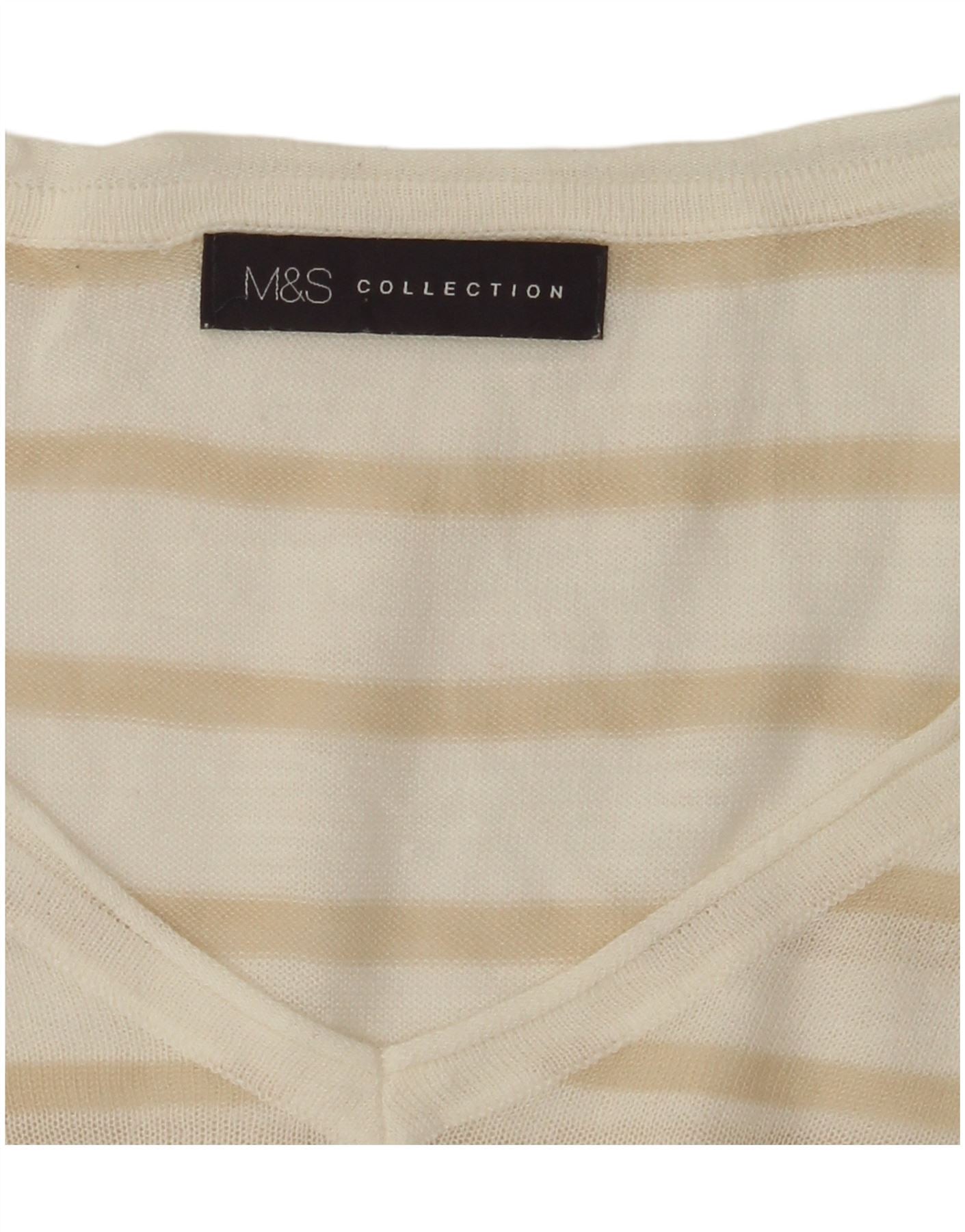 MARKS & SPENCER Dame V-hals sweater UK 16 Stor hvid stribet