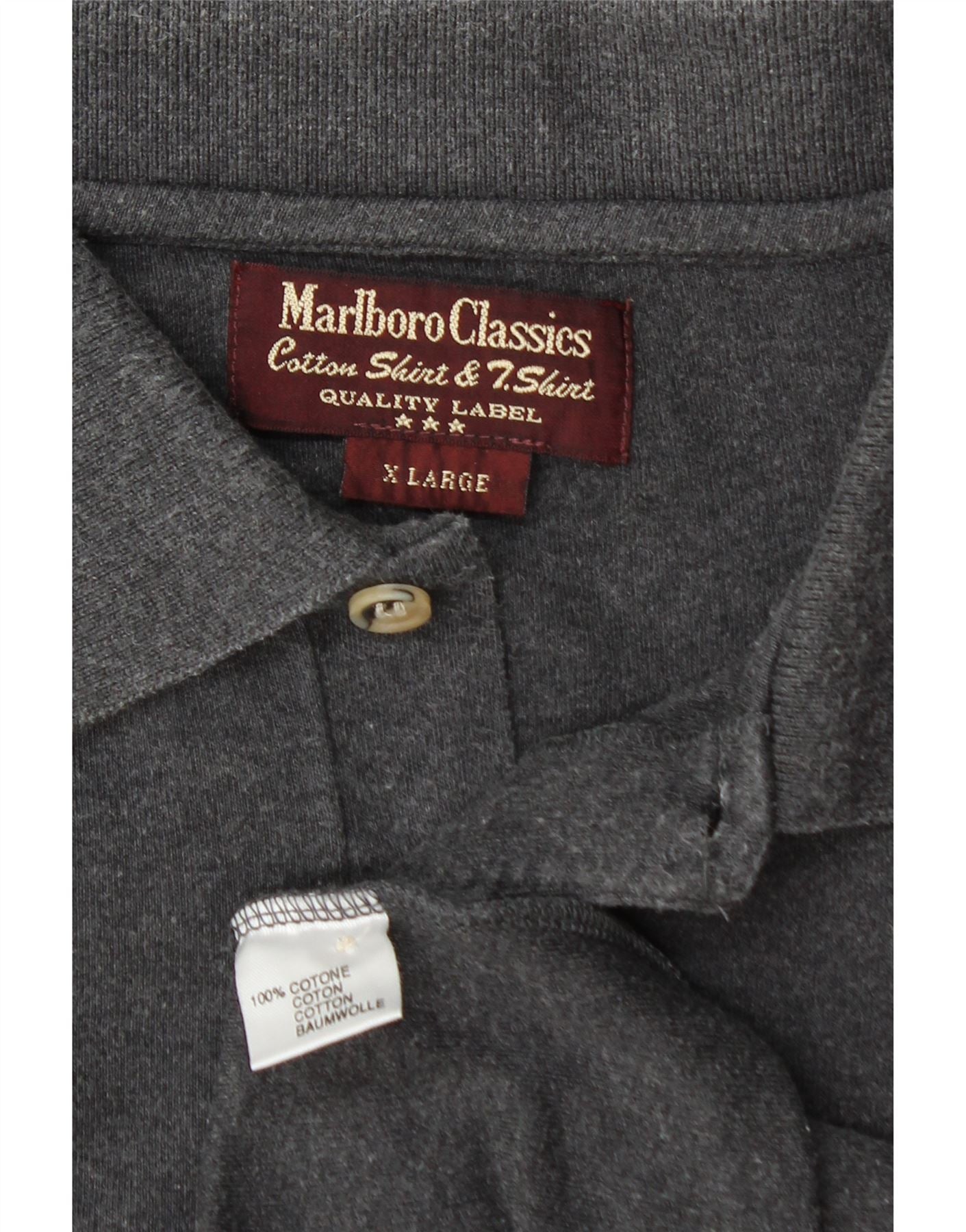 MARLBORO CLASSICS Mens Long Sleeve Polo Shirt XL Grey Cotton