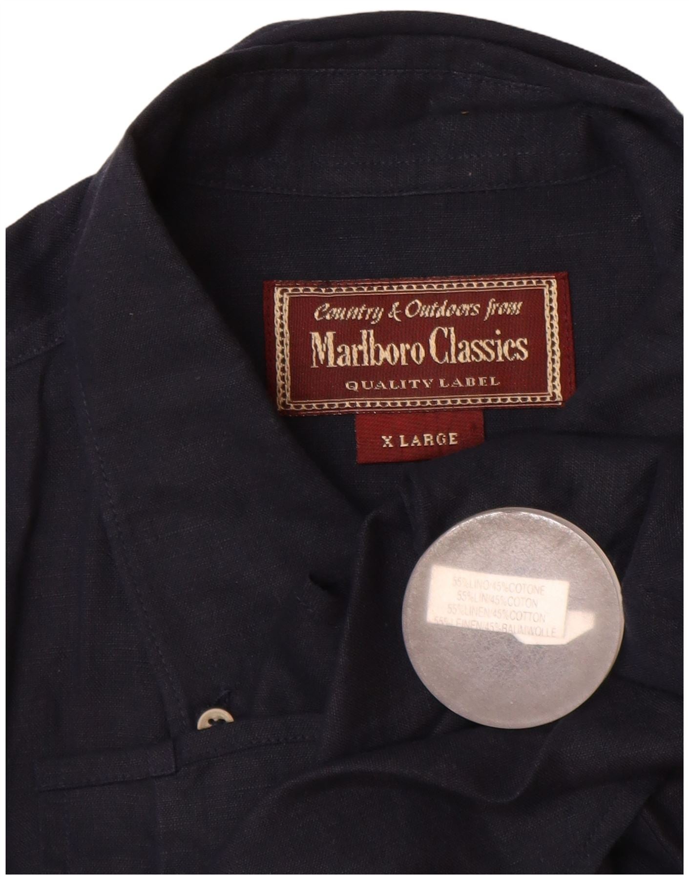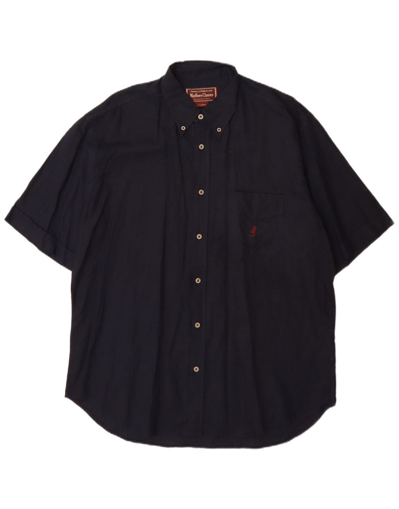 MARLBORO CLASSICS Kortærmet herreskjorte XL marineblå hør
