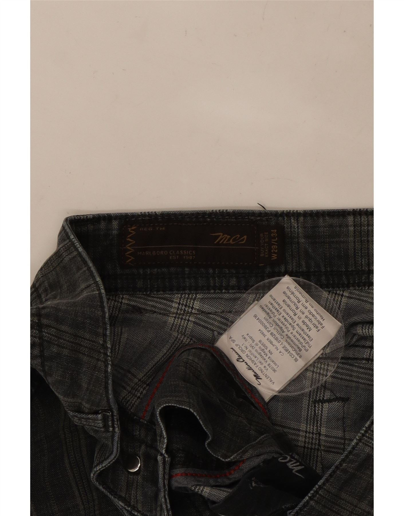 MARLBORO CLASSICS Lige fritidsbukser til mænd W29 L29 sort ternet bomuld