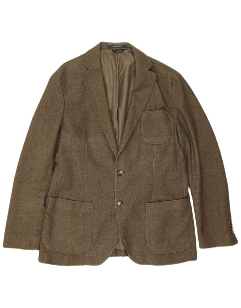 MASSIMO DUTTI Mens 2 Button Blazer Jacket EU 52 Large Khaki Cotton