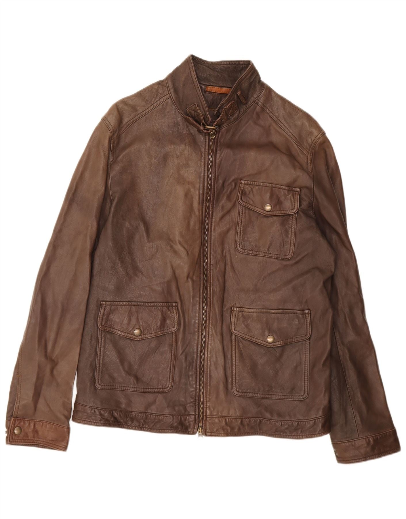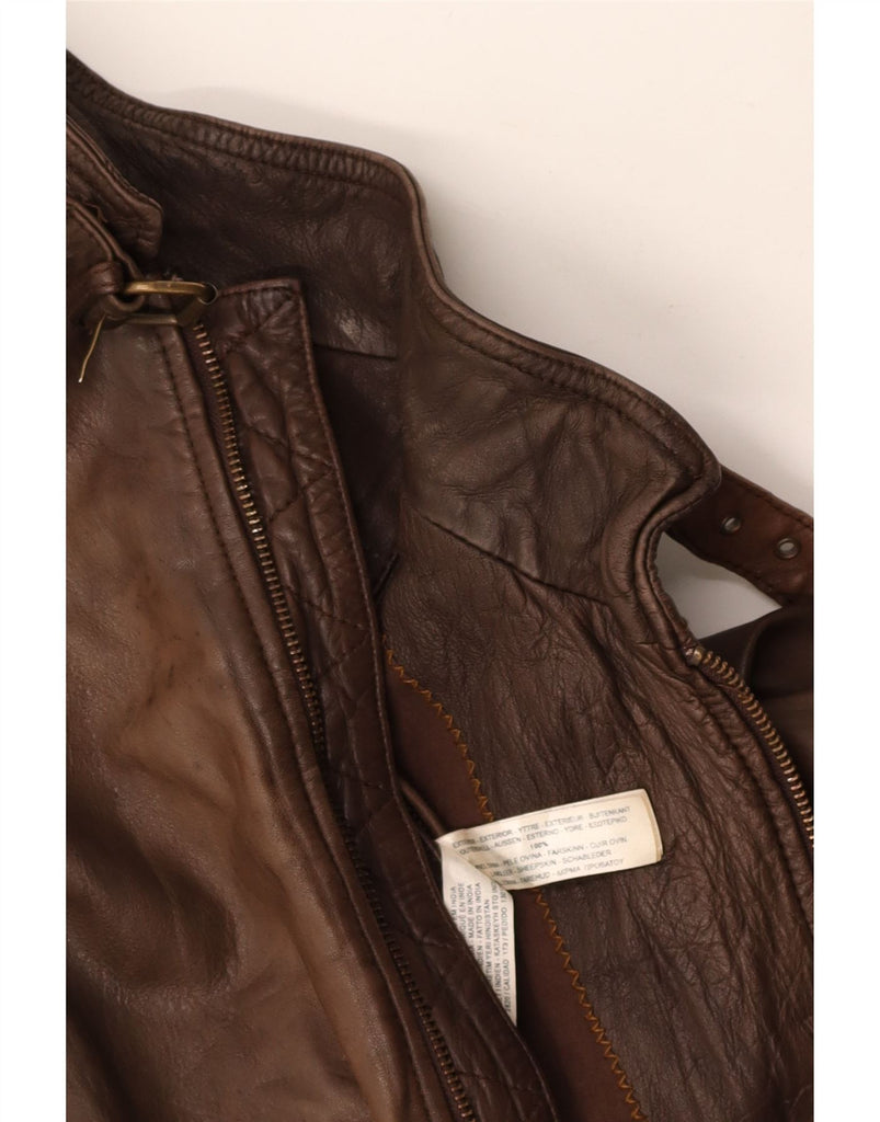 MASSIMO DUTTI Mens Bomber Leather Jacket UK 40 Large Brown Leather