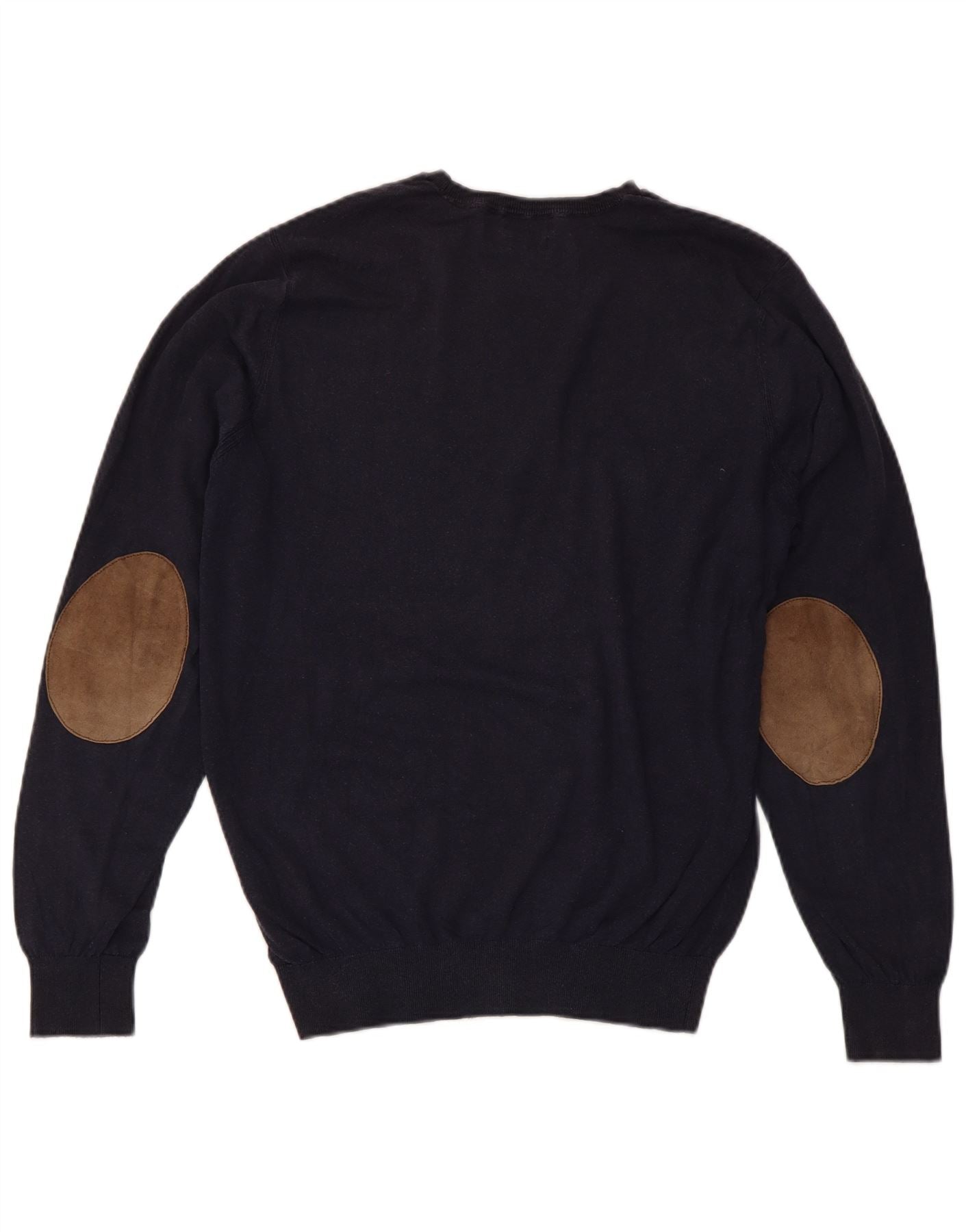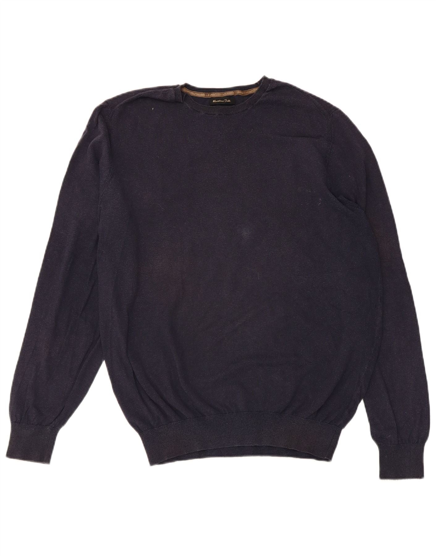 MASSIMO DUTTI Herre sweater med rund hals, medium marineblå bomuld