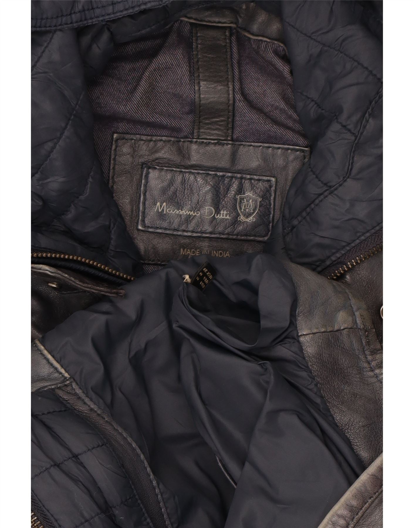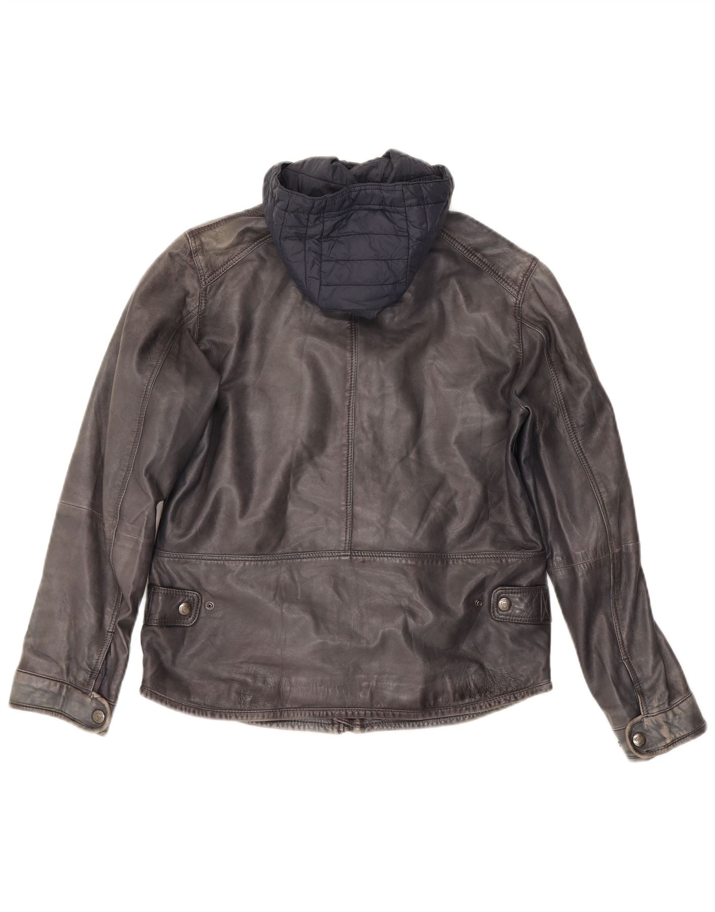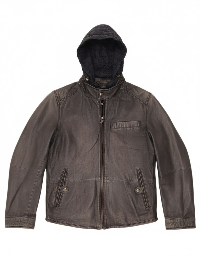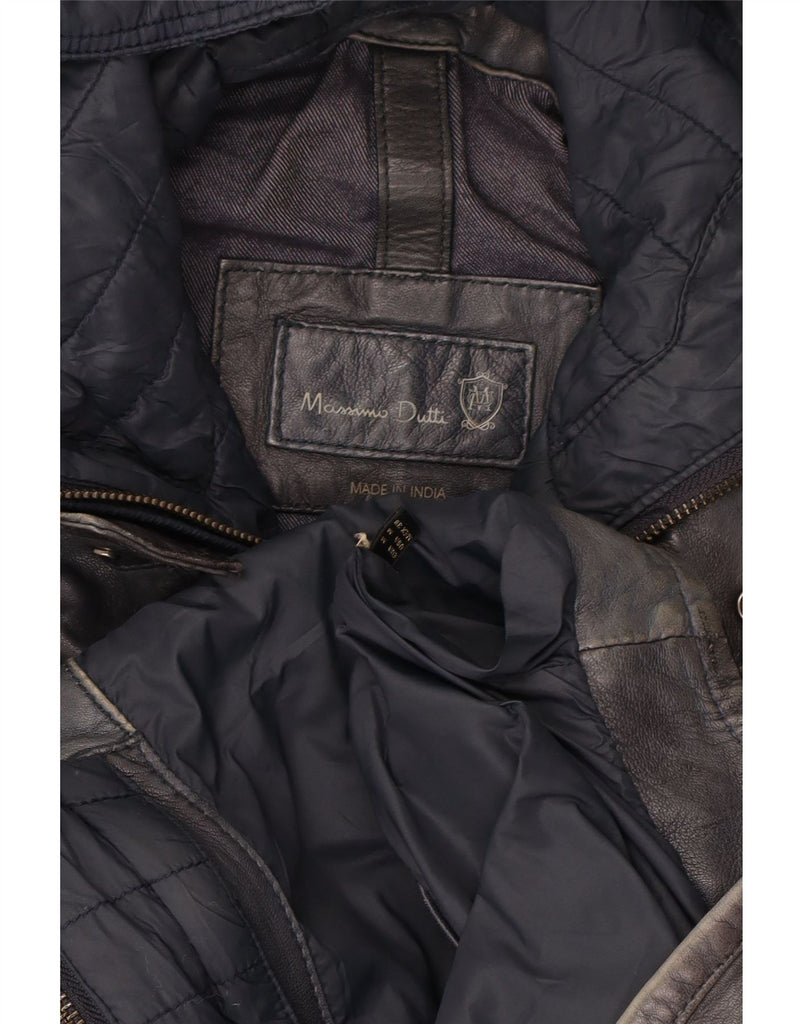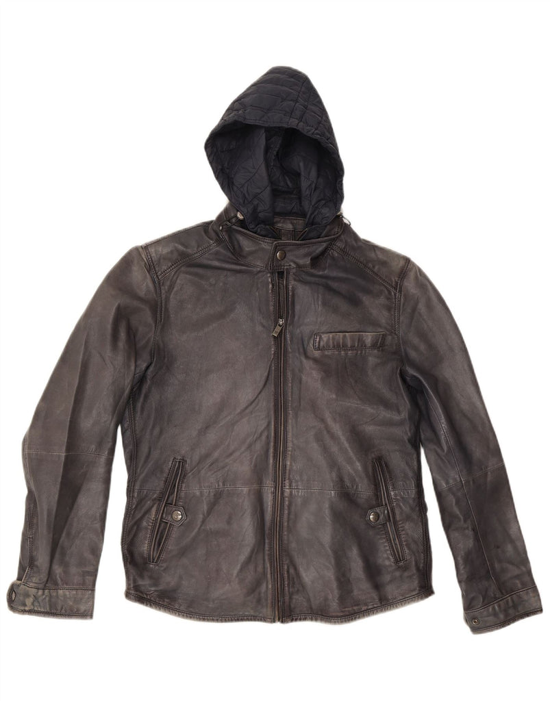 MASSIMO DUTTI Mens Hooded Leather Jacket UK 38 Medium Navy Blue