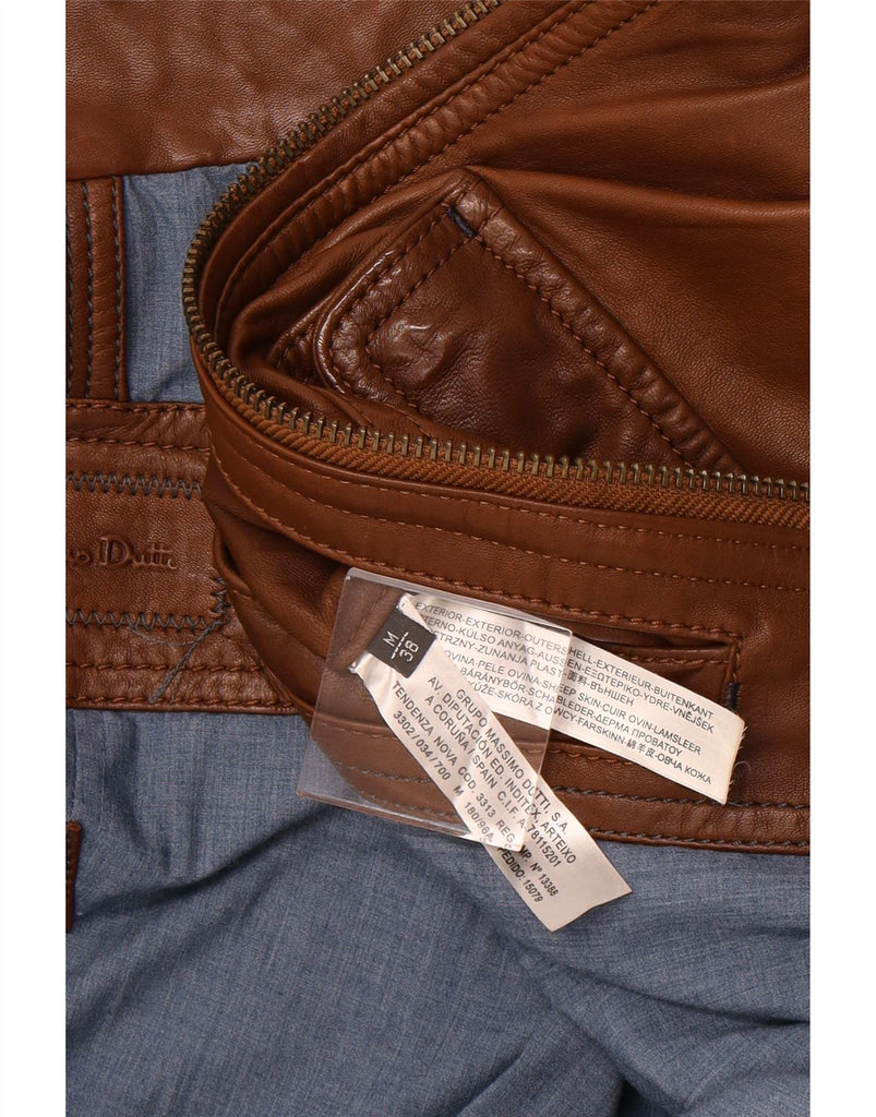MASSIMO DUTTI Mens Leather Jacket UK 38 Medium Brown Sheepskin