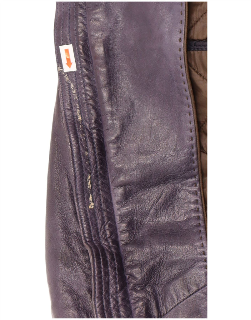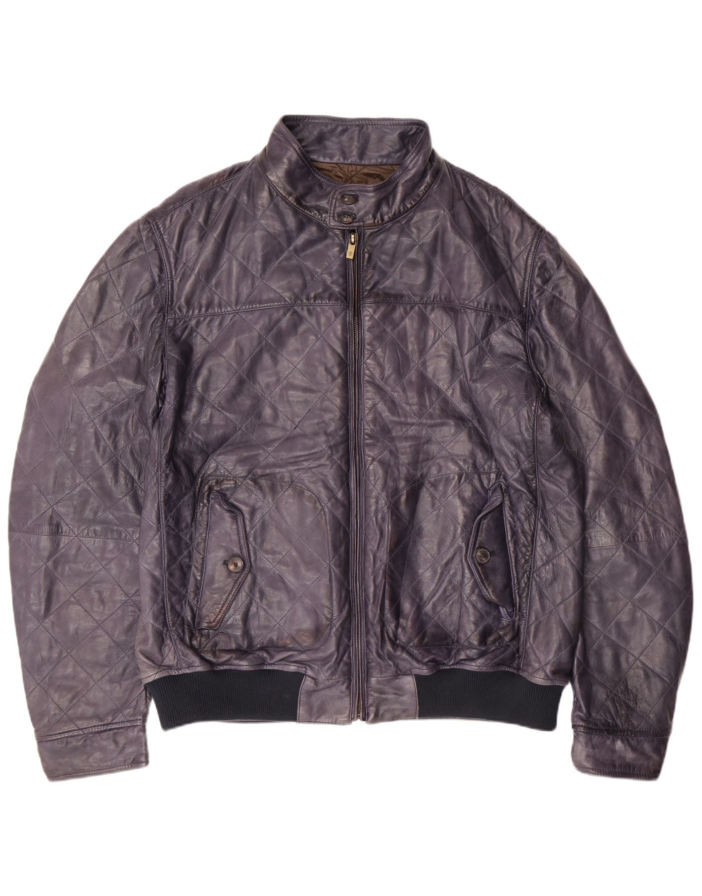MASSIMO DUTTI Mens Leather Jacket UK 42 XL Navy Blue