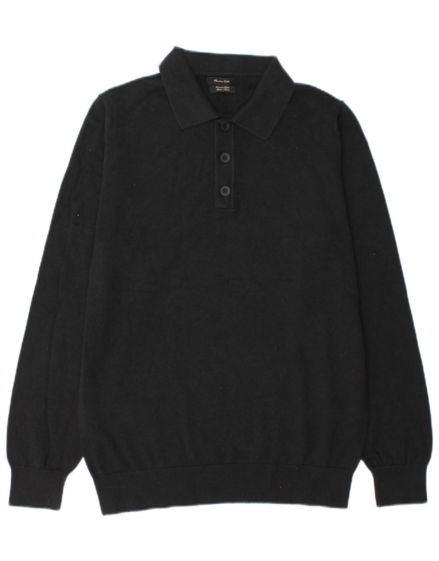 Massimo Dutti Herre Polo Neck Jumper Sweater Medium Sort Bomuld