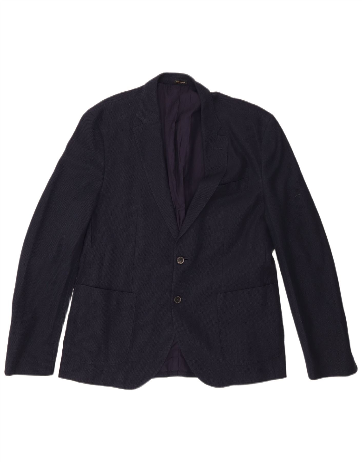 MASSIMO DUTTI Mens Skinny 2 Button Blazer Jacket EU 54 XL Navy Blue Cotton
