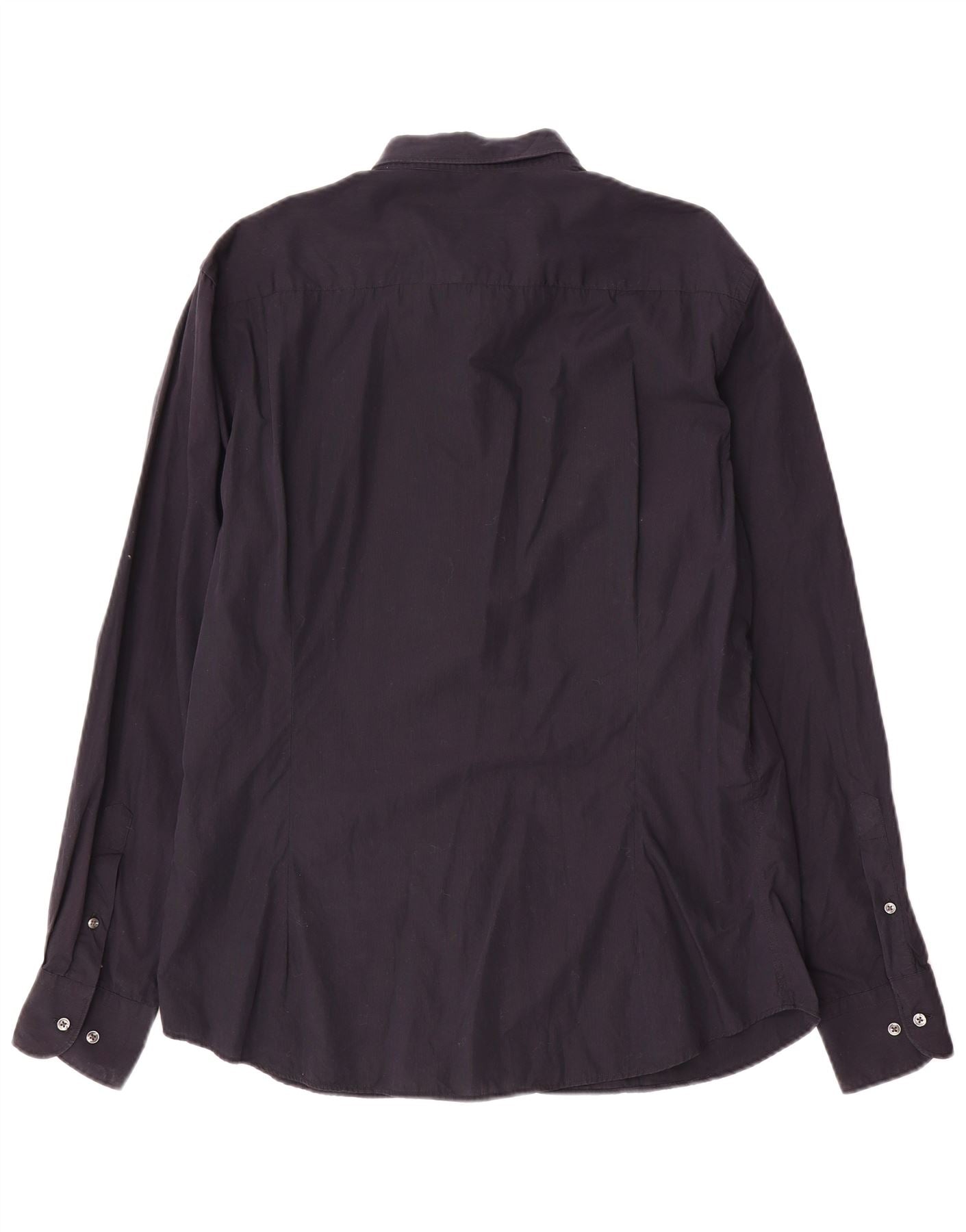MASSIMO DUTTI Herre Slim Fit skjorte XL marineblå bomuld