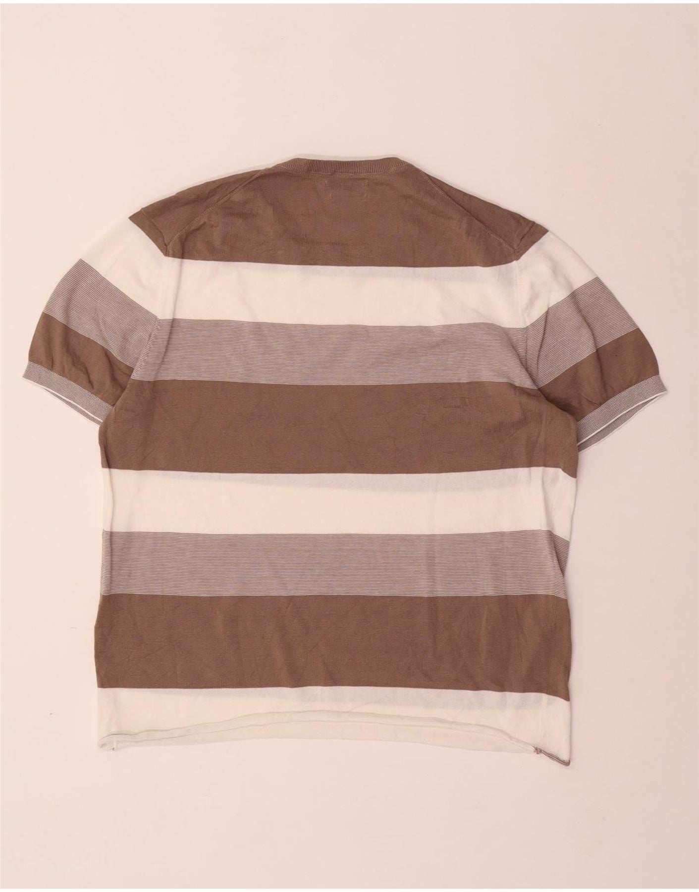 MASSIMO DUTTI Herre T-Shirt Top Stor Beige Stribet Bomuld