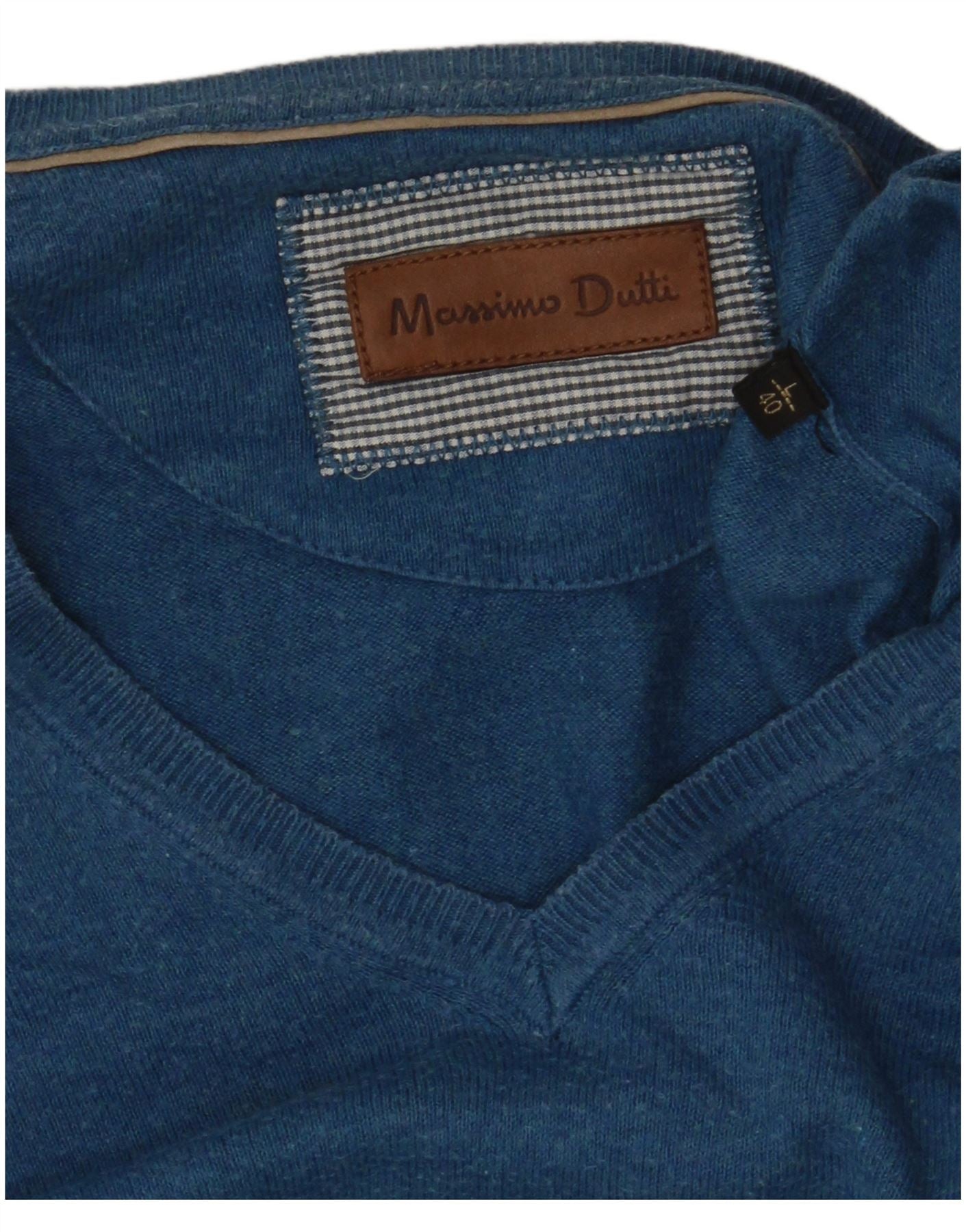 - AI beskrivelse: Denne herre V-hals sweater fra Massimo Dutti er lavet af et fint blåt strikstof. Den har en klassisk V-udskæring og lange ærmer. Den almindelige pasform sikrer behageligt slid. Ribbede manchetter og søm giver en pæn finish. Dette pullover-design tilbyder tidløs stil og alsidighed til enhver garderobe.