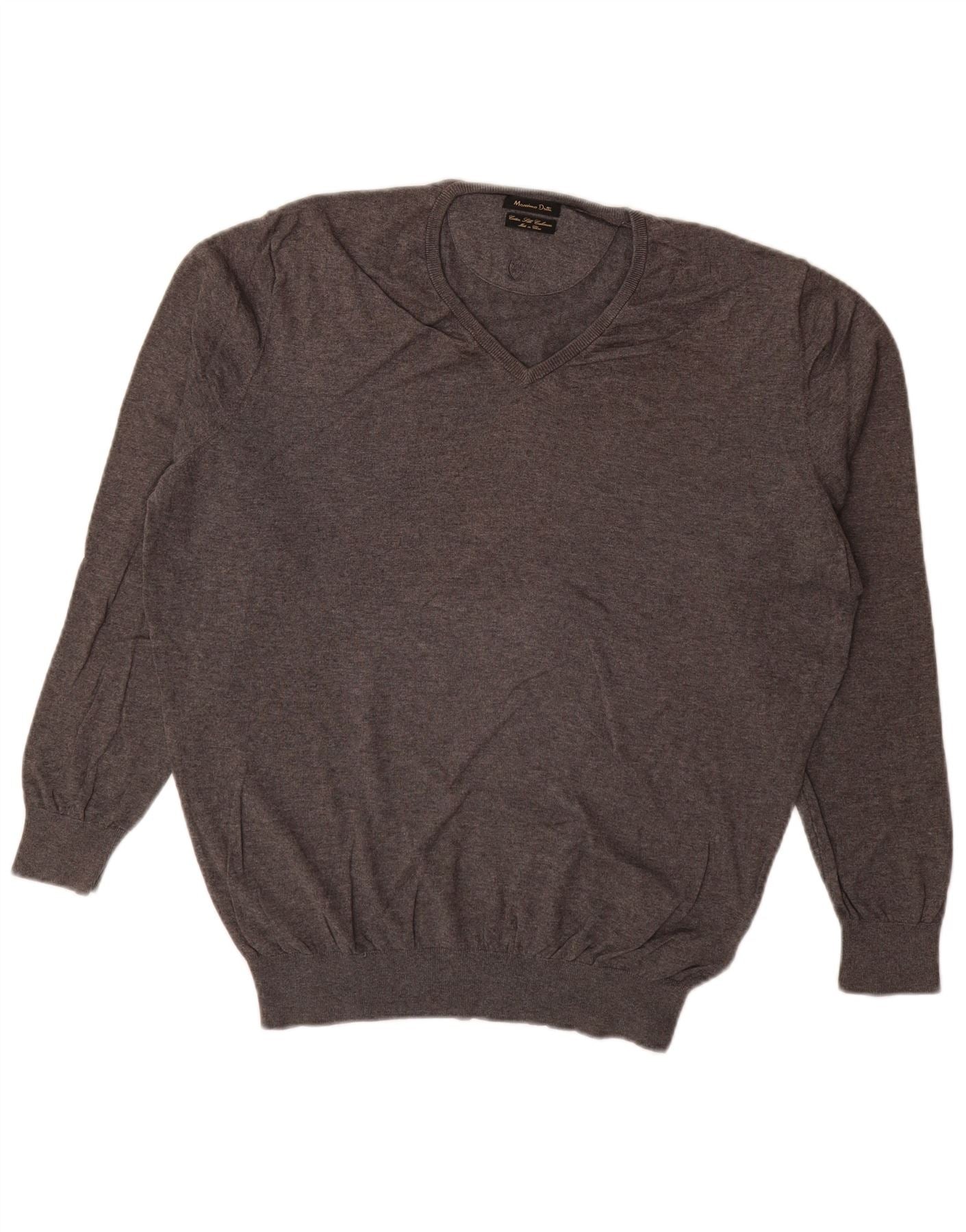 MASSIMO DUTTI Herre V-hals sweater XL Grå Bomuld