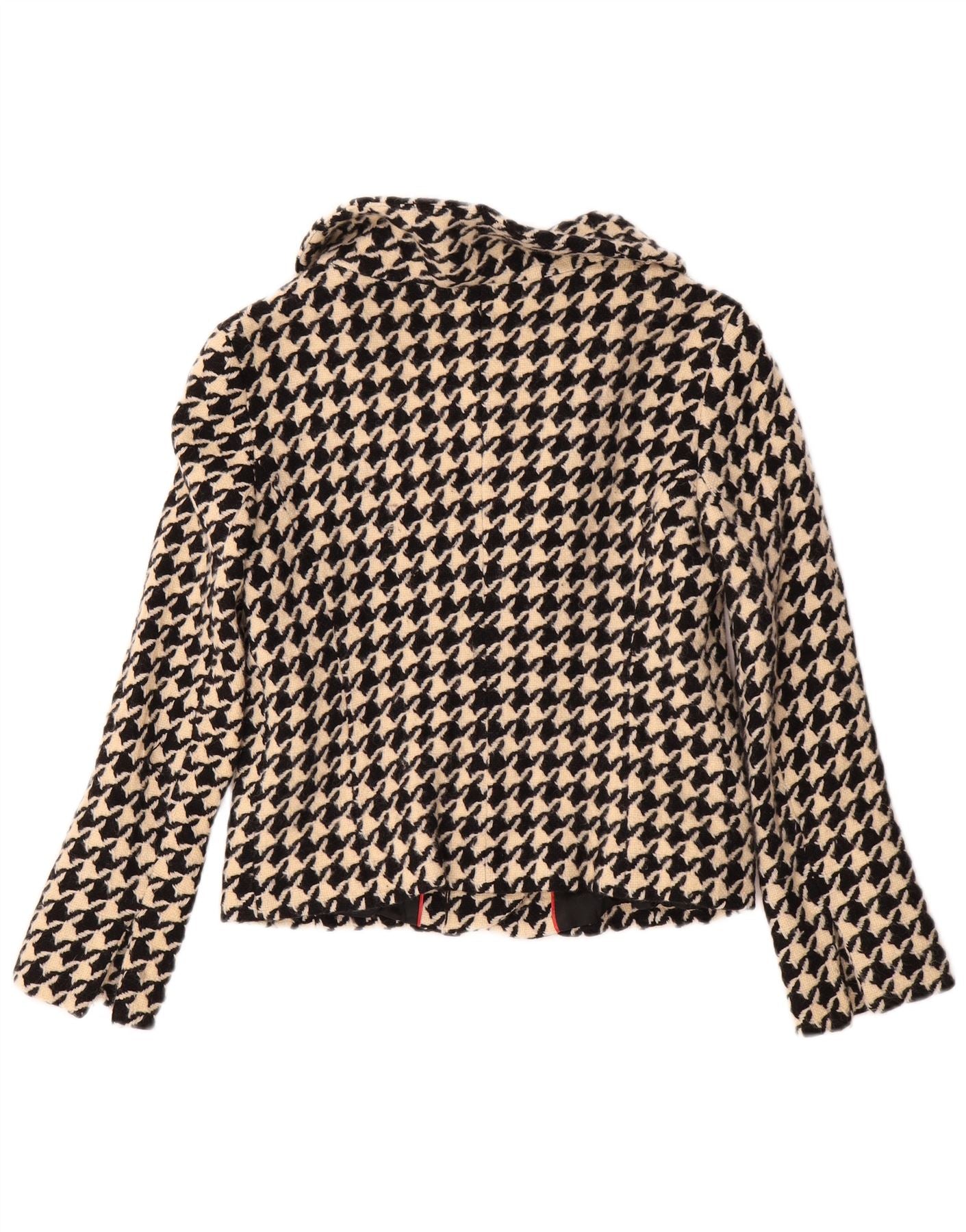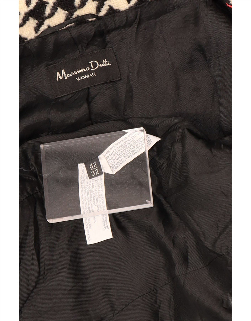 MASSIMO DUTTI Womens Crop Pea Coat EU 42 Large Black Houndstooth Wool