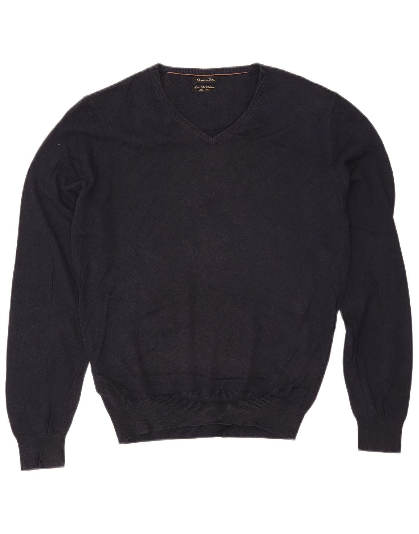 MASSIMO DUTTI Dame Oversized V-hals sweater UK 10 Small Navy Blue