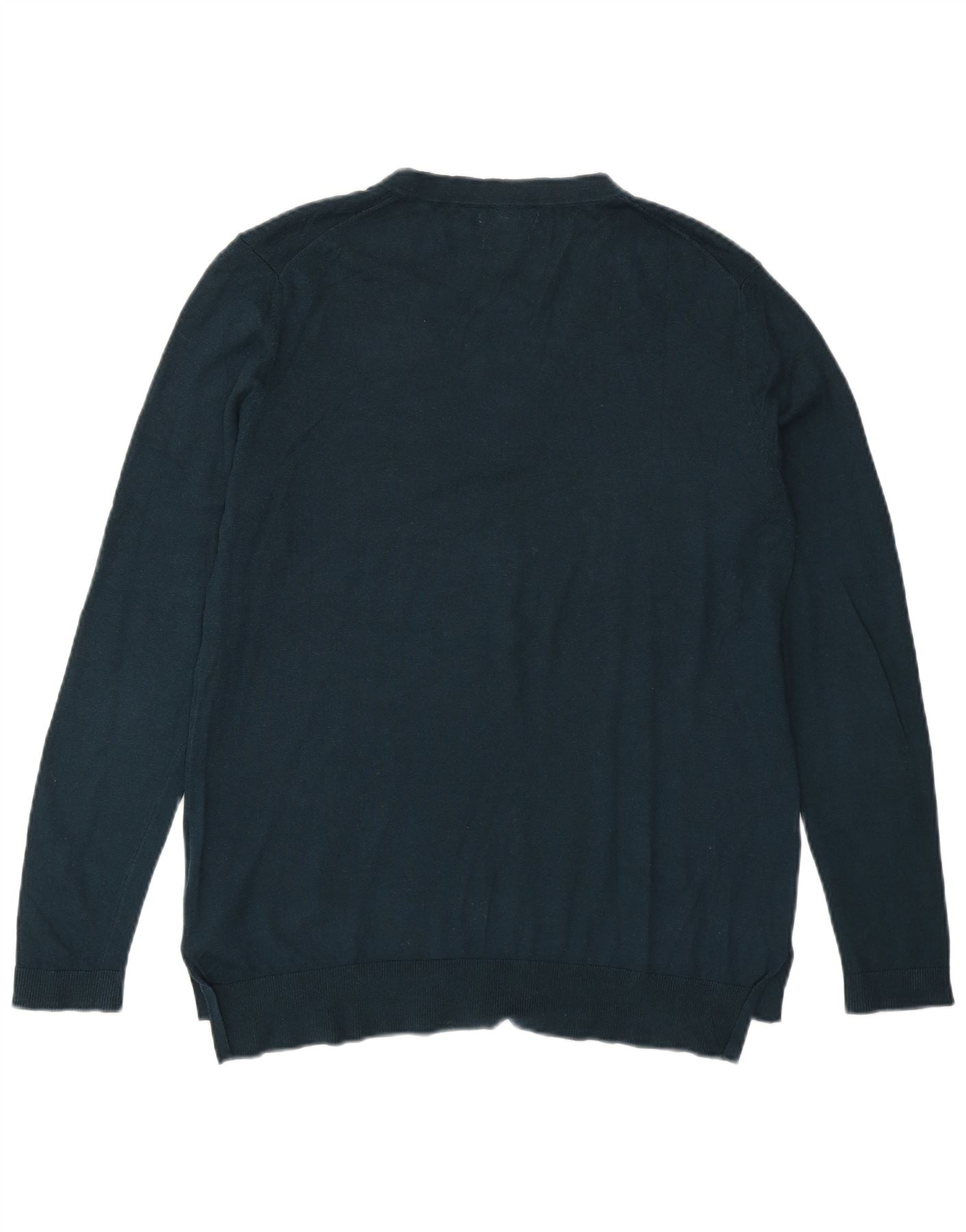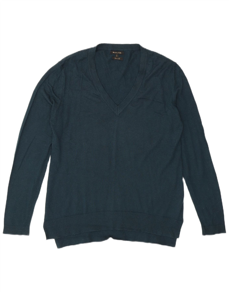MASSIMO DUTTI Womens V-Neck Jumper Sweater UK 16 Large Green Wool