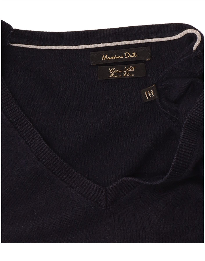 MASSIMO DUTTI Womens V-Neck Jumper Sweater UK 16 Large Navy Blue