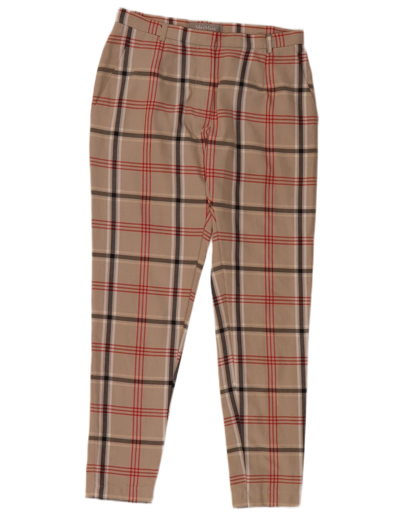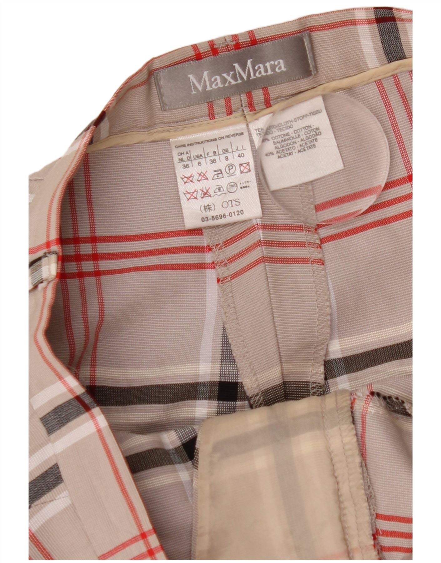MAX MARA Womens Slim Chino Trousers UK 8 Small W28 L27 Beige Check Cotton