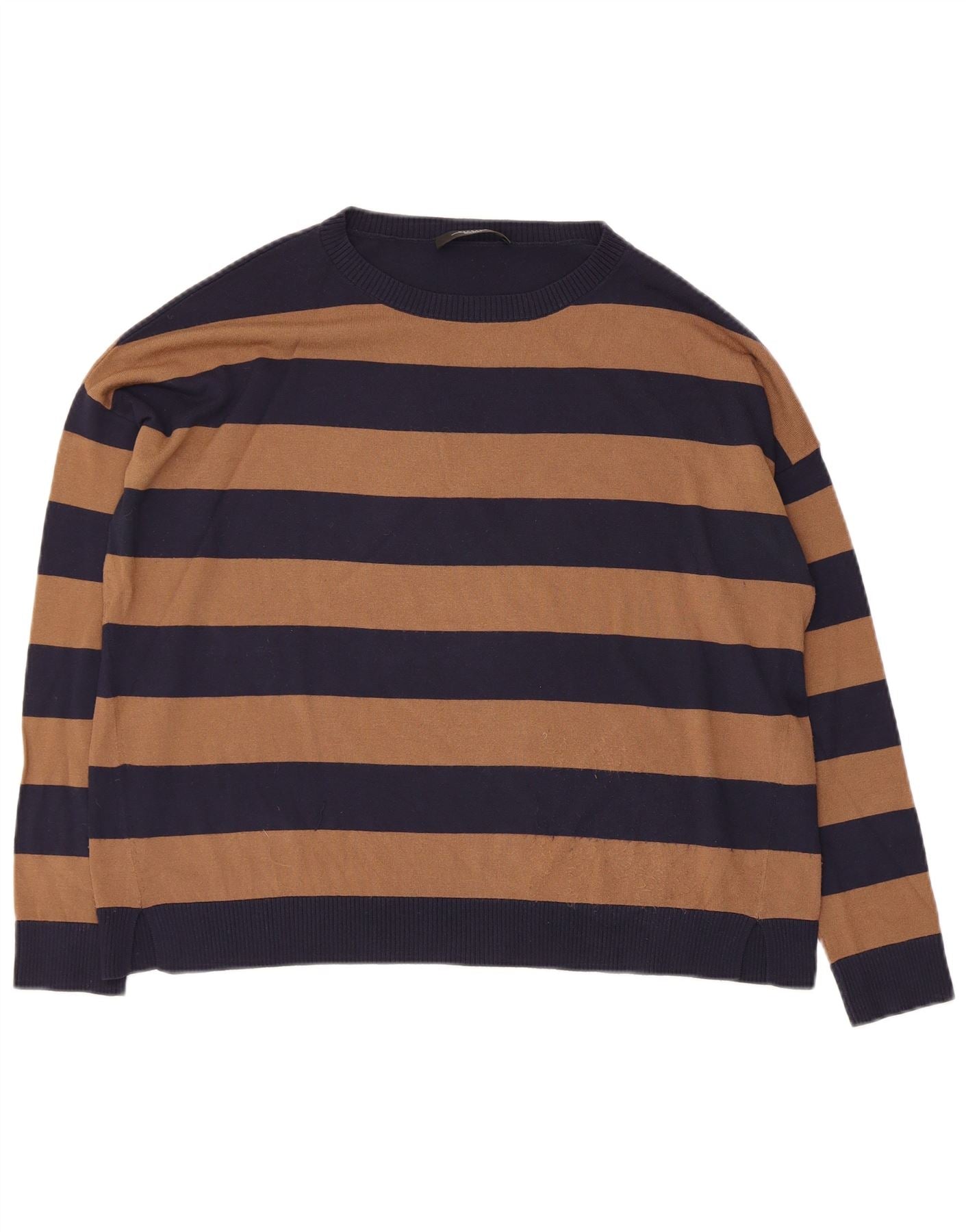- AI beskrivelse: Denne Max Mara sweater med rund hals til kvinder er lavet af en let viskose-strikblanding, der tilbyder komfort og en blød følelse. Den har et klassisk stribet mønster i kontrasterende marineblå og brune toner. Den runde halsudskæring og lange ærmer giver en tidløs silhuet. Designet til en afslappet løs pasform sikrer den ubesværet slid. Denne pullover-stil kombinerer klassisk design med moderne komfort.