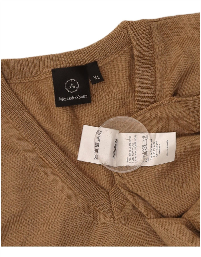 MERCEDES-BENZ Mens V-Neck Jumper Sweater XL Beige New Wool