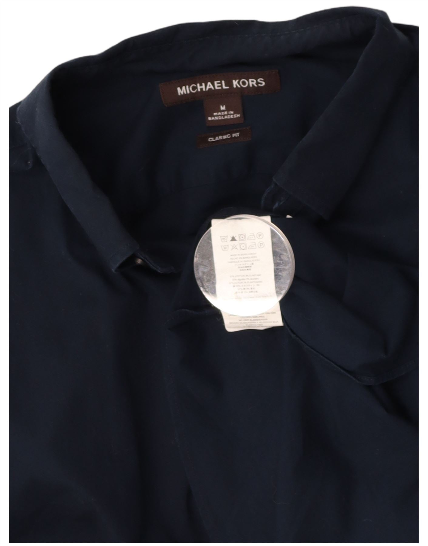 MICHAEL KORS Mens Classic Fit Shirt Medium Navy Blue Cotton