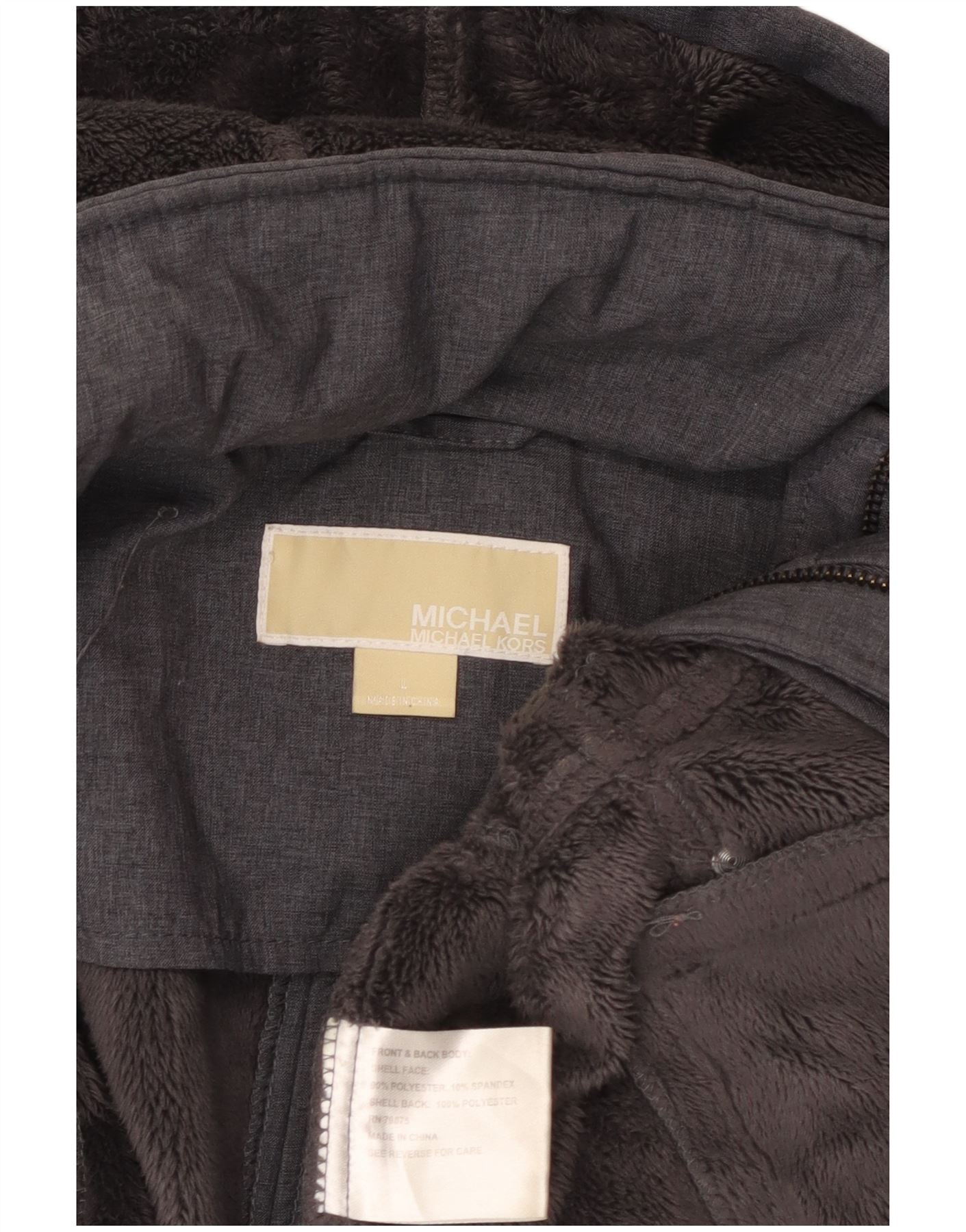 MICHAEL KORS Womens Hooded Military Jacket UK 16 Large Grey Polyester