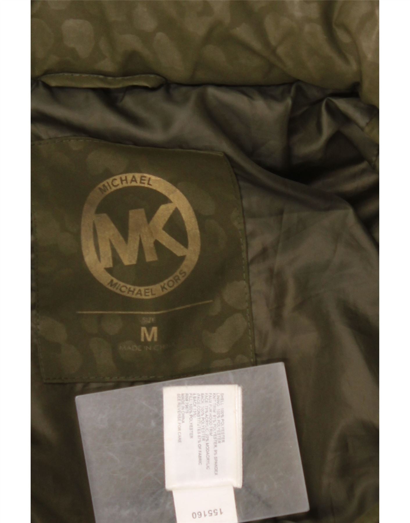 MICHAEL KORS Dame hætte polstret frakke UK 14 Medium Khaki Animal Print