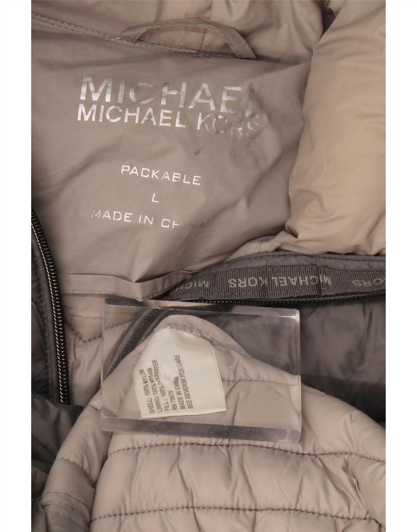 MICHAEL KORS Dame hætte polstret frakke UK 16 Stor grå nylon
