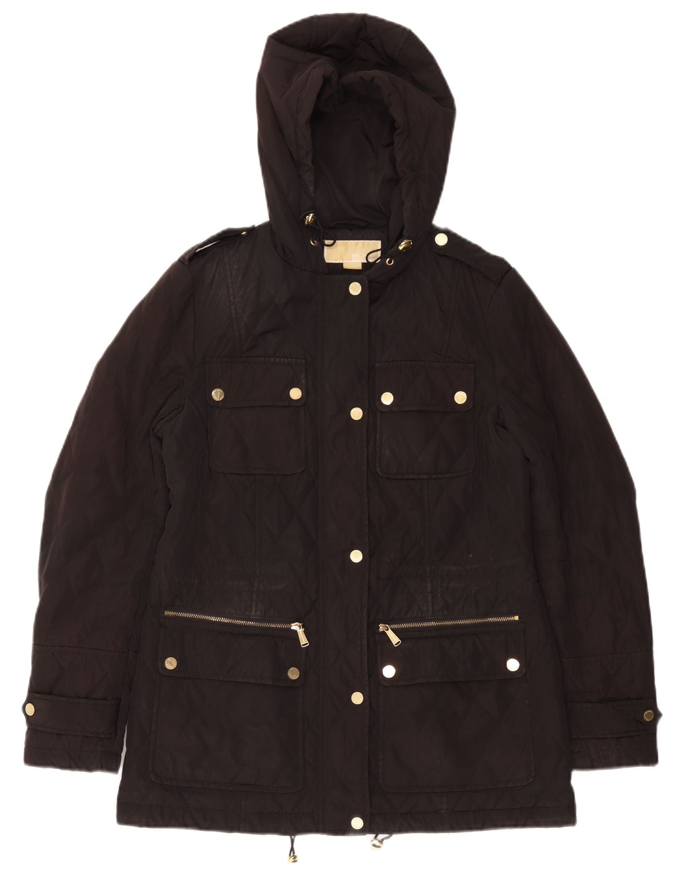 MICHAEL KORS Dame Loose Fit Quiltet jakke med hætte UK 10 Small Black