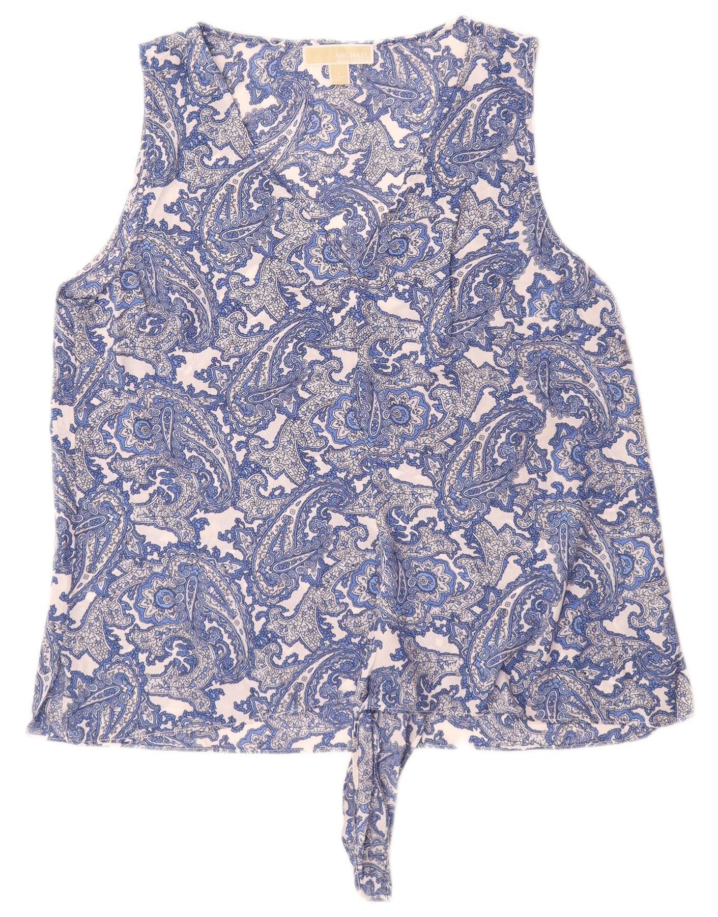 MICHAEL KORS Dame ærmeløs bluse Top UK 16 Large Blue Paisley