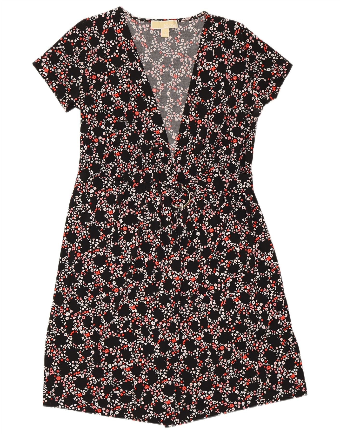 MICHAEL KORS Slå-om-kjole til kvinder UK 10 Small Black Floral Polyester