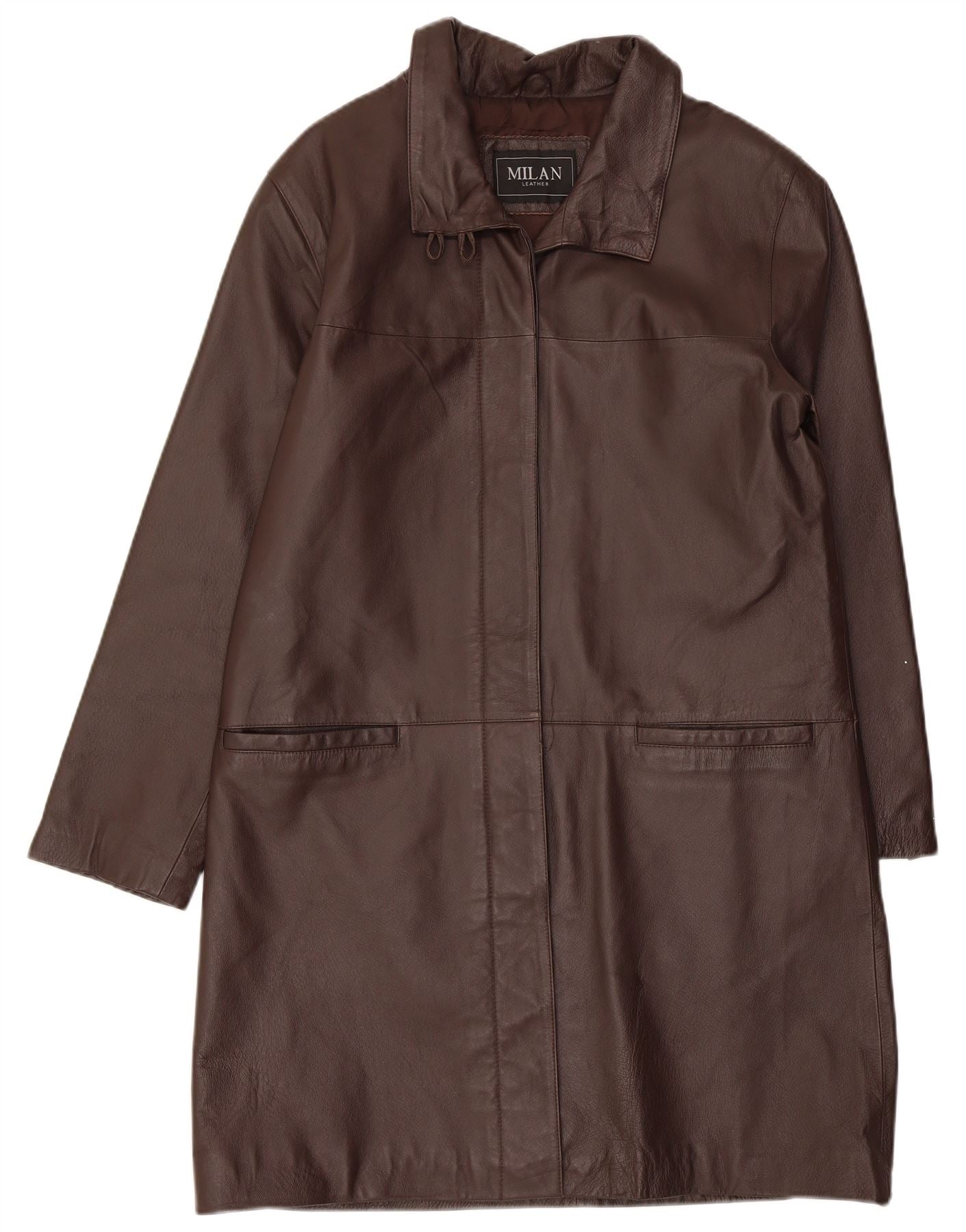 MILAN Dame Læderfrakke UK 14 Stor Brun Læder