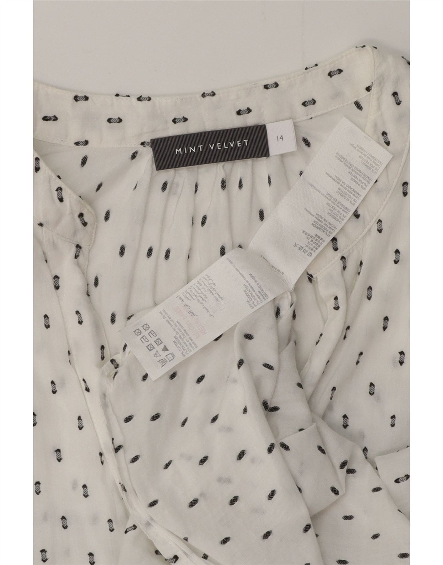 MINT FLØJEL Dame grafisk skjorte bluse UK 14 Stor hvid blomstret bomuld