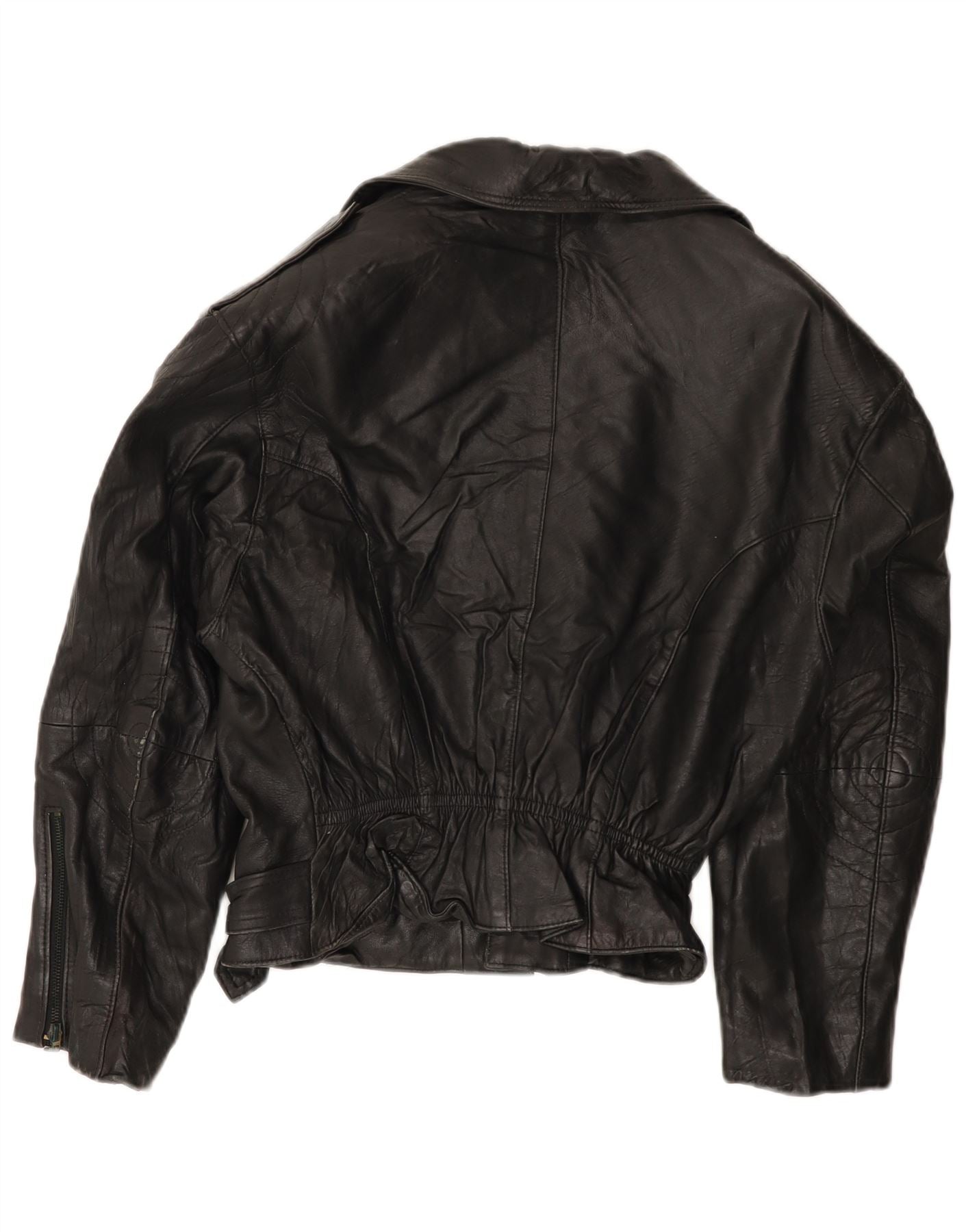 MISS JOY Dame Læder Biker Jacket IT 42 Medium Sort Læder