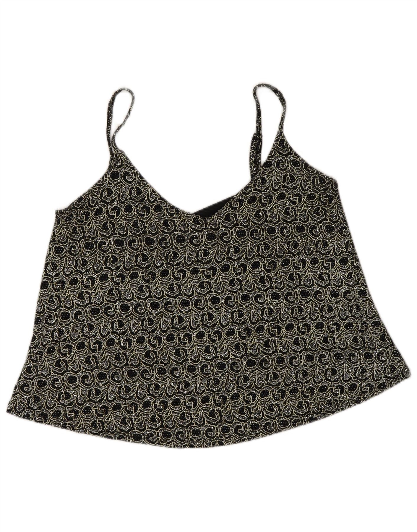 MISS SELFRIDGE Womens Cami Top UK 12 Medium Black Paisley Nylon