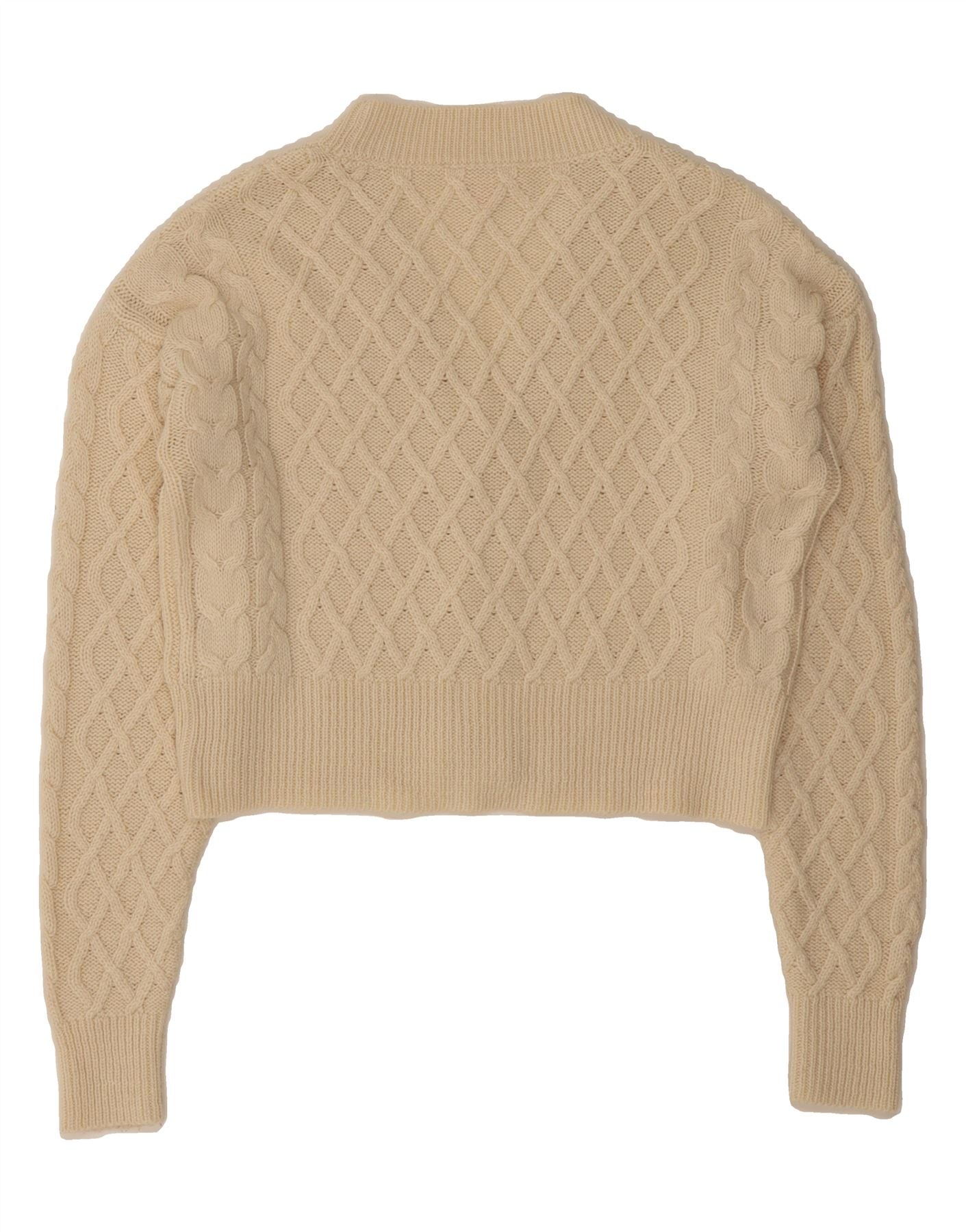 MISS SELFRIDGE Womens Crop Cardigan Sweater UK 4 XS Beige Argyle/Diamond