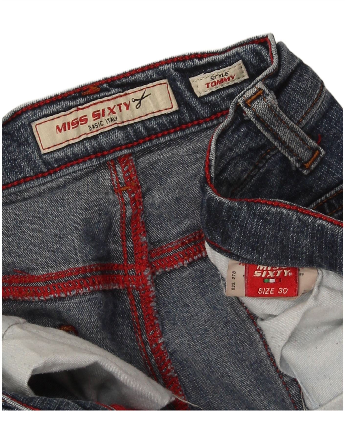 - AI beskrivelse: Disse Miss Sixty damejeans er lavet af blå denim med en vasket finish. De har en knaplukning og en normal pasform gennem låret. Benene flader ud fra knæet og skaber en klassisk retro-silhuet. Functional pockets are included. A subtle logo detail adds brand recognition. This design offers a timeless, stylish look.