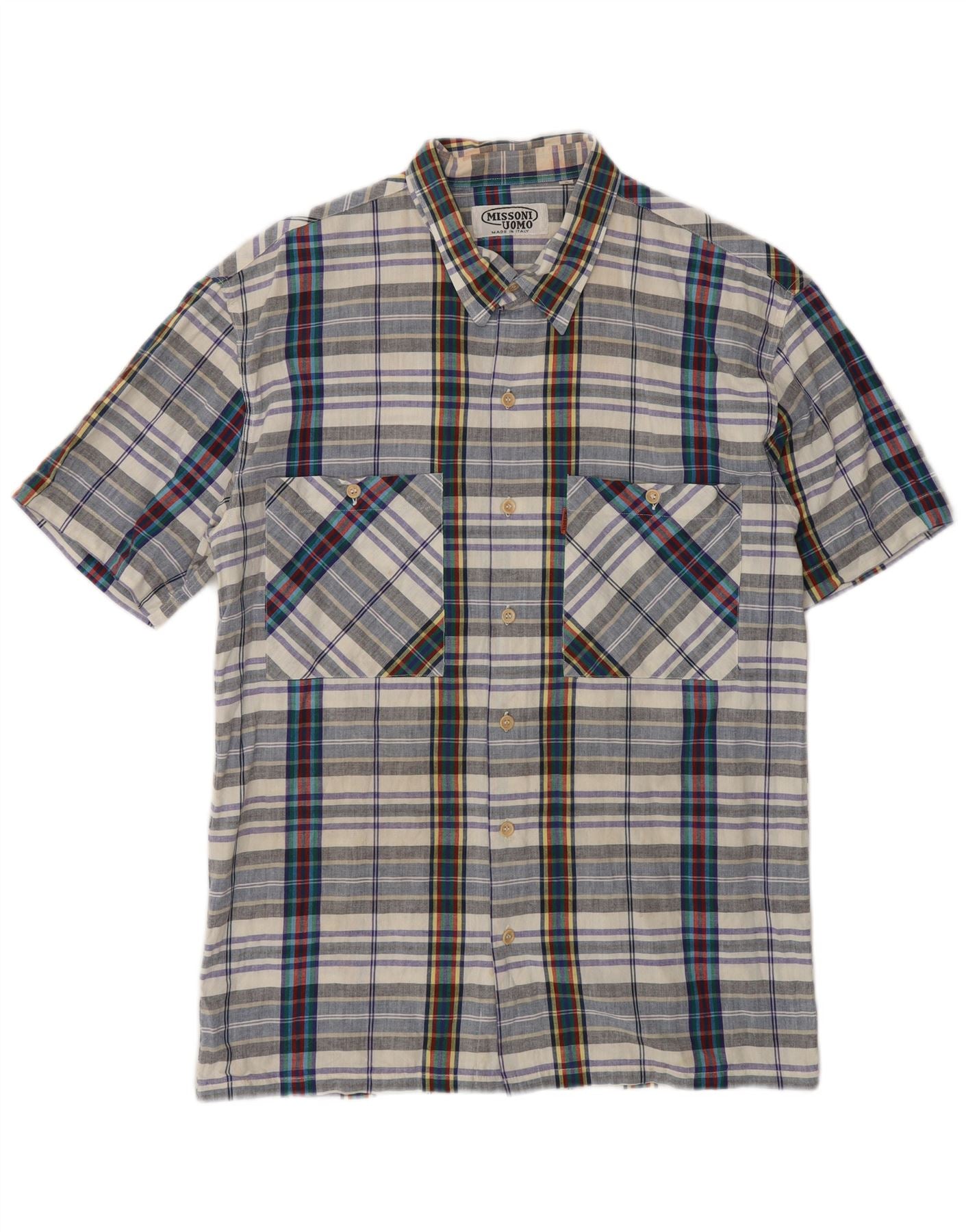 Missoni kortærmet herreskjorte Stor blå ternet bomuld