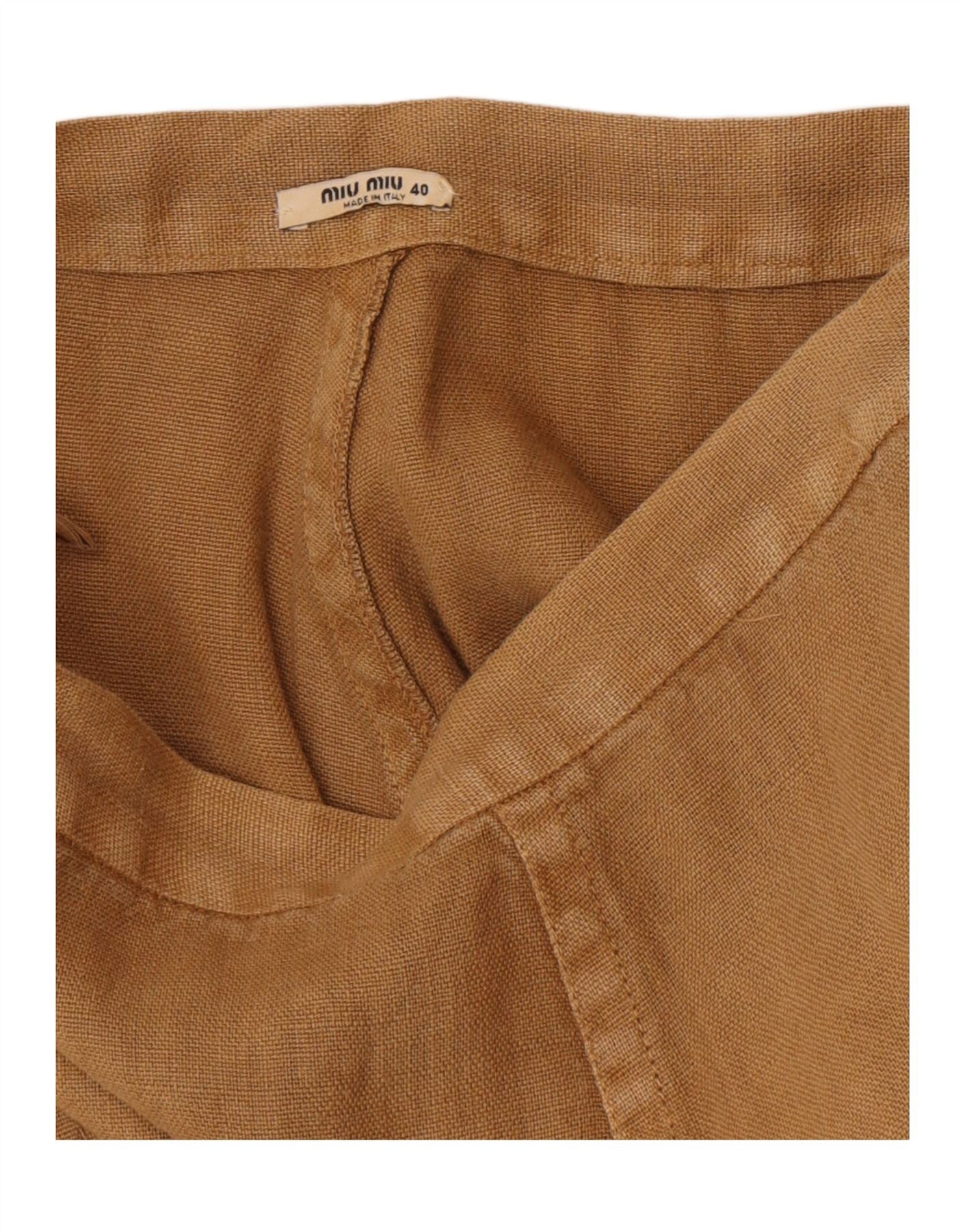Miu Miu Womens A-Line Skirt IT 40 Small W26 Khaki Linen Classic