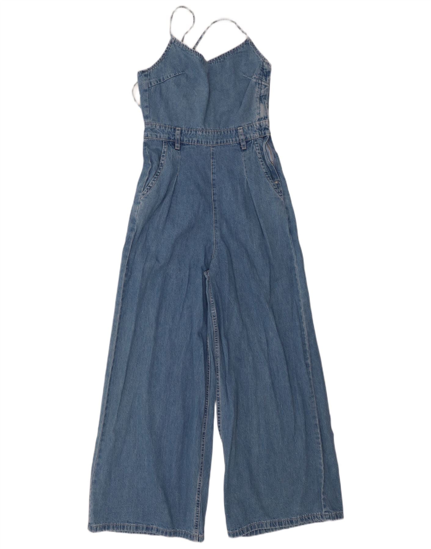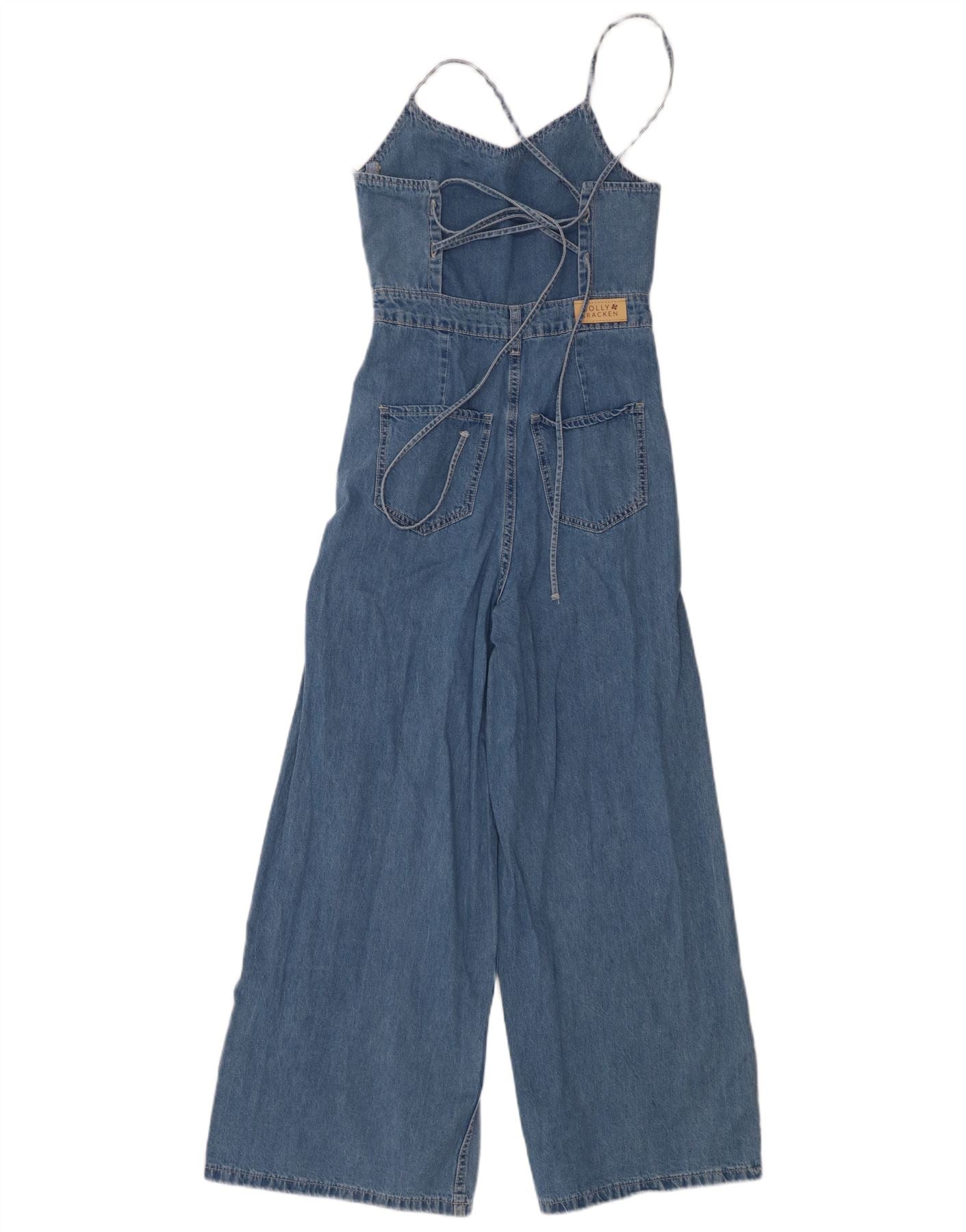 MOLLY BRACKEN Womens Sleeveless Denim Jumpsuit UK 6 XS Blue Cotton