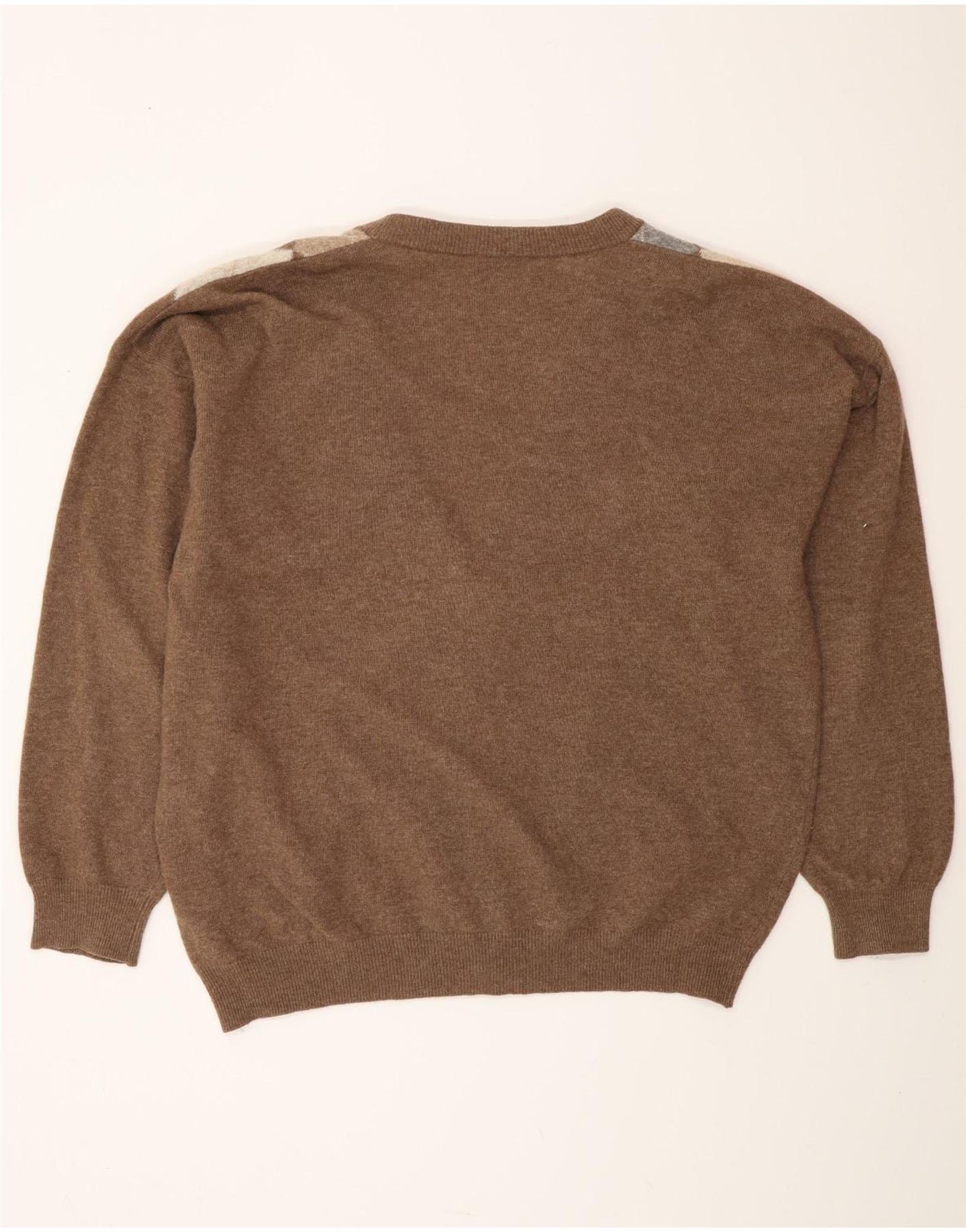MONELLO Herre cardigan sweater IT 52 Stor brun Argyle/Diamant uld