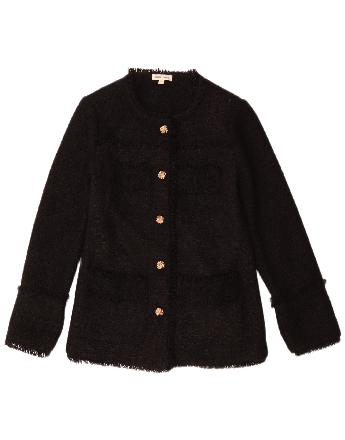 MONSOON Dame 5-knaps blazerjakke UK 10 Lille sort polyester