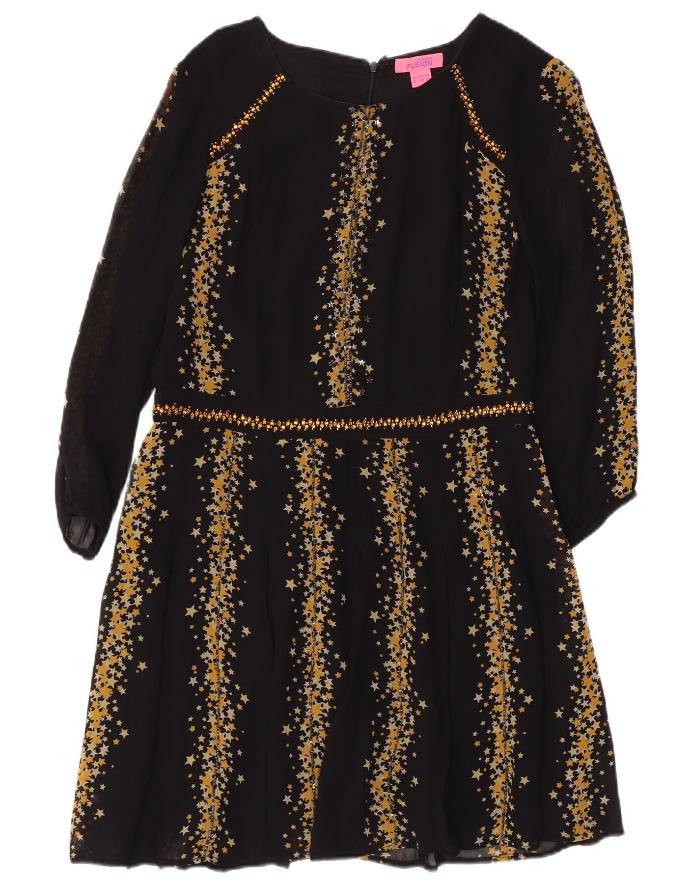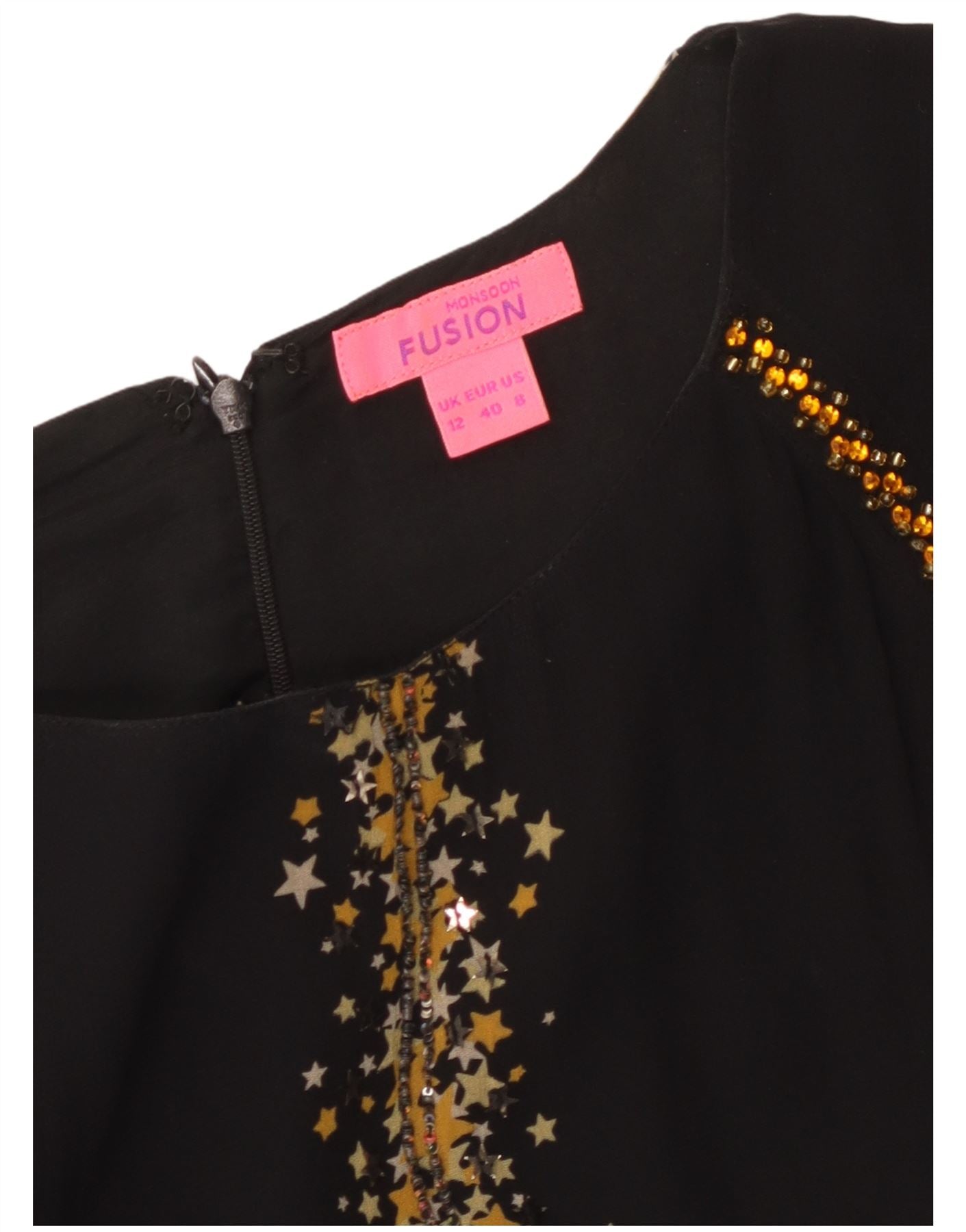 MONSOON Kvinder abstrakt mønster 3/4 ærmet A-line kjole UK 12 Medium Sort