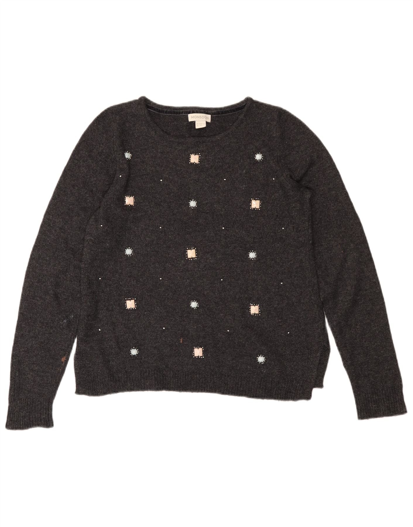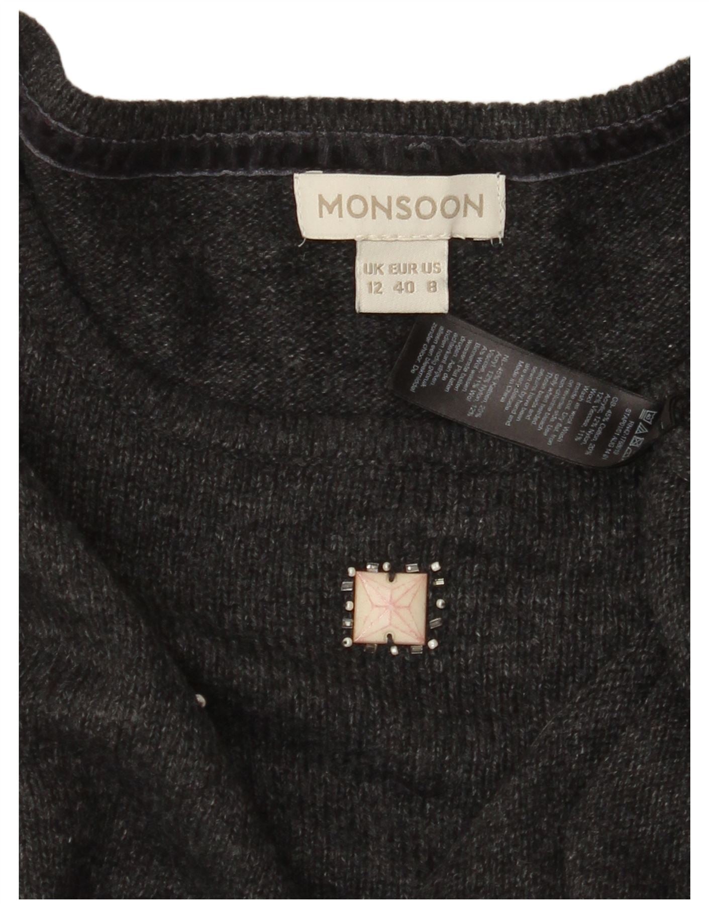 MONSOON Dame Boat Neck Jumper Sweater UK 12 Medium Grey Bomuld