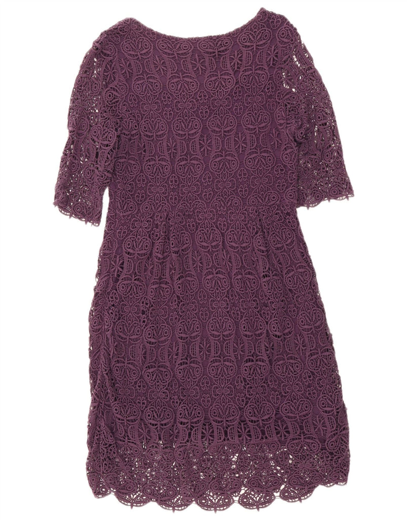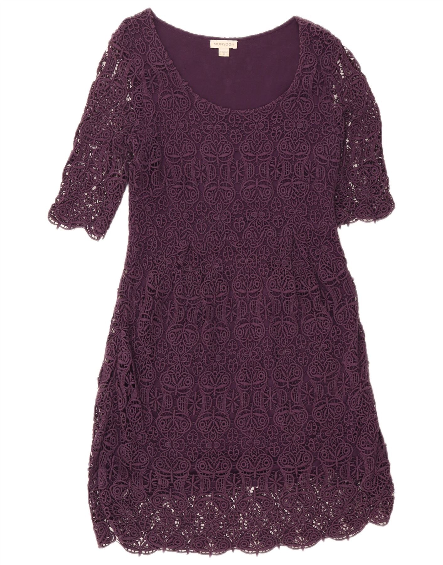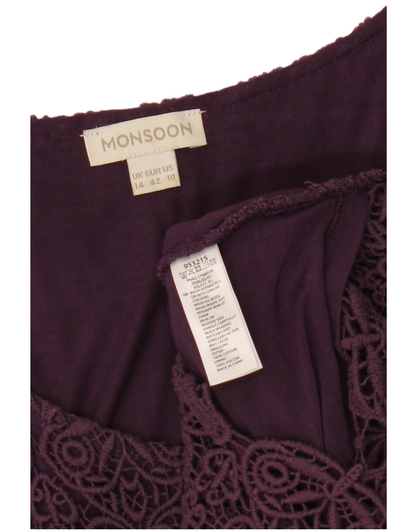MONSOON Womens Crochet 3/4 Sleeve Sheath Dress UK 14 Medium Purple Floral