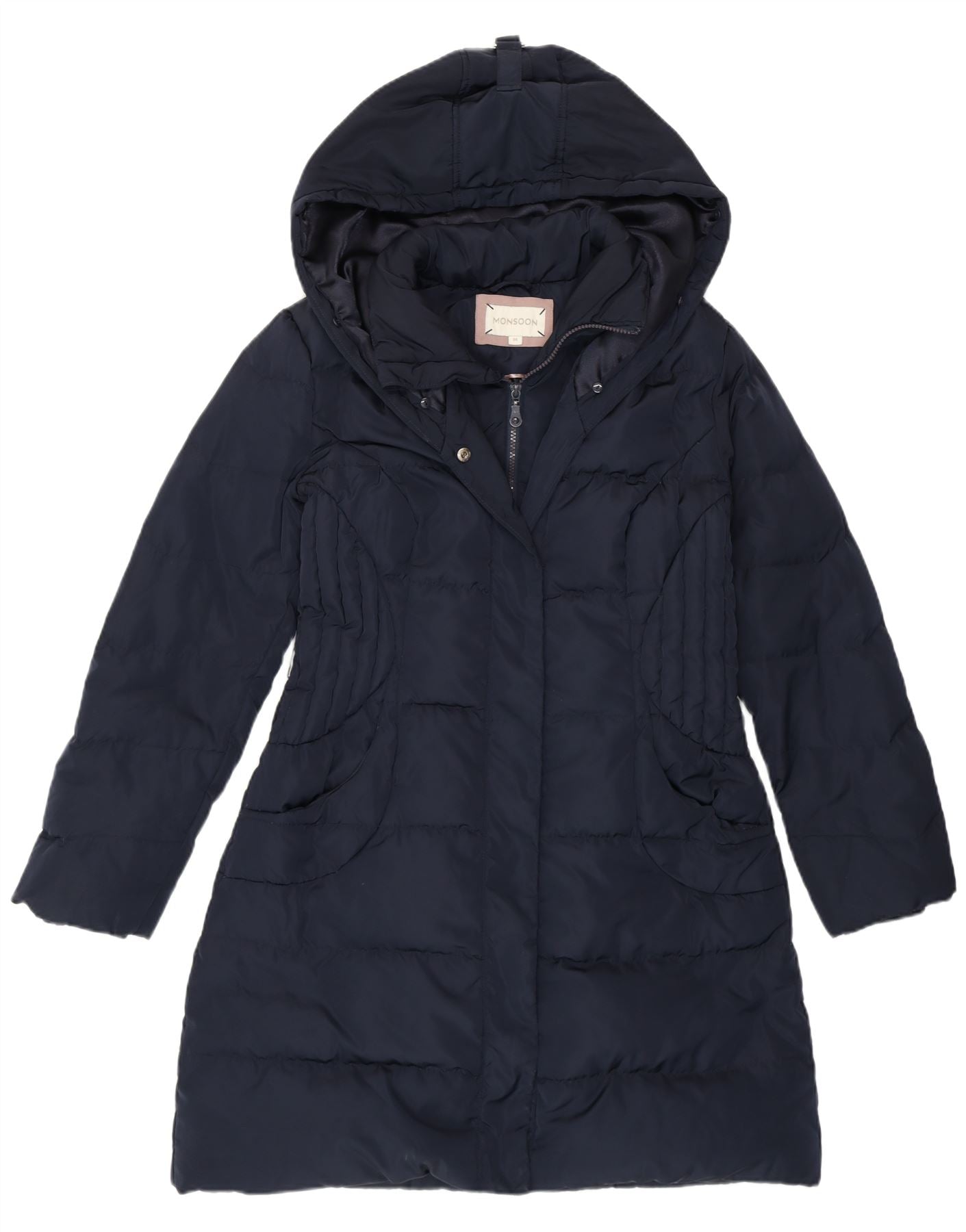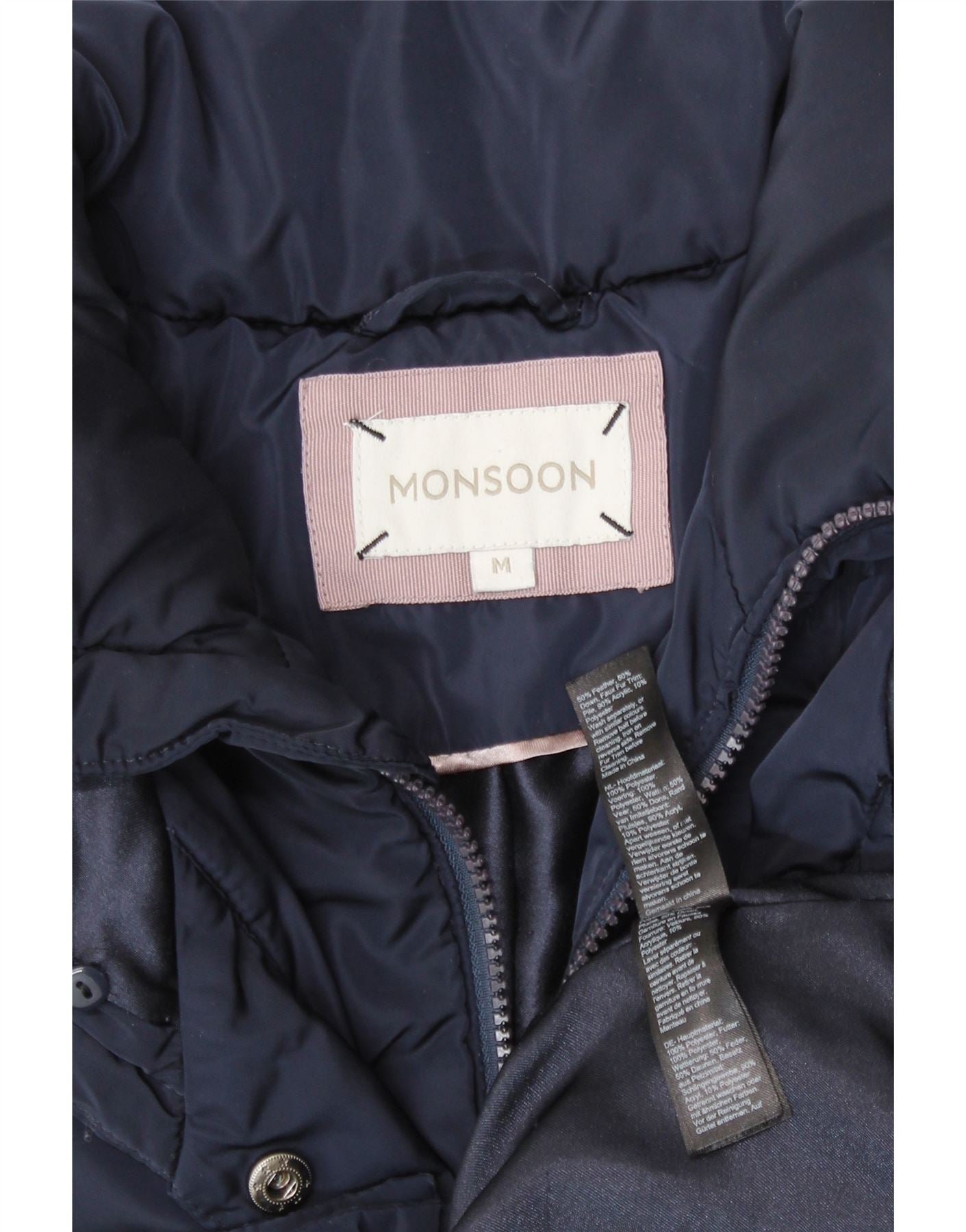 MONSOON Dame Hooded Polstret Frakke UK 14 Medium Navy Blue Polyester