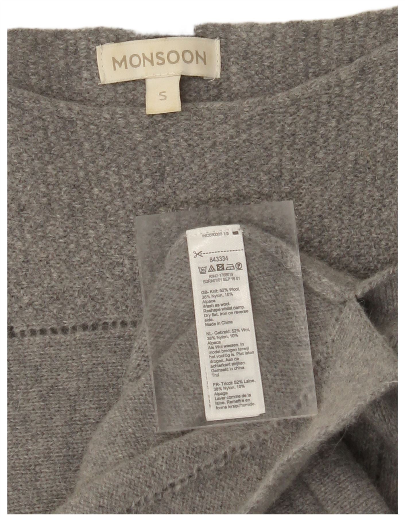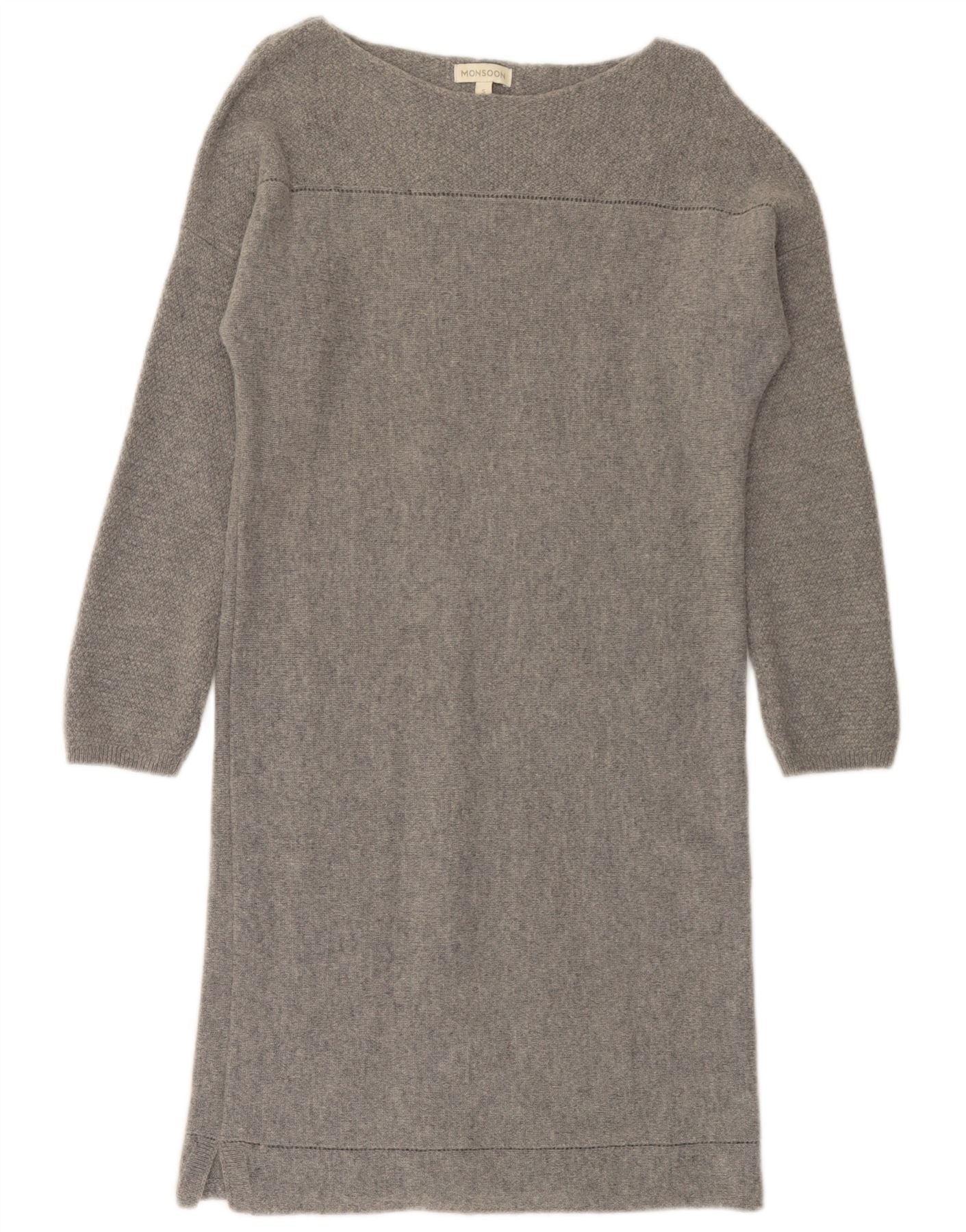 MONSOON Dame Langærmet Jumper Dress UK 10 Small Grey Uld