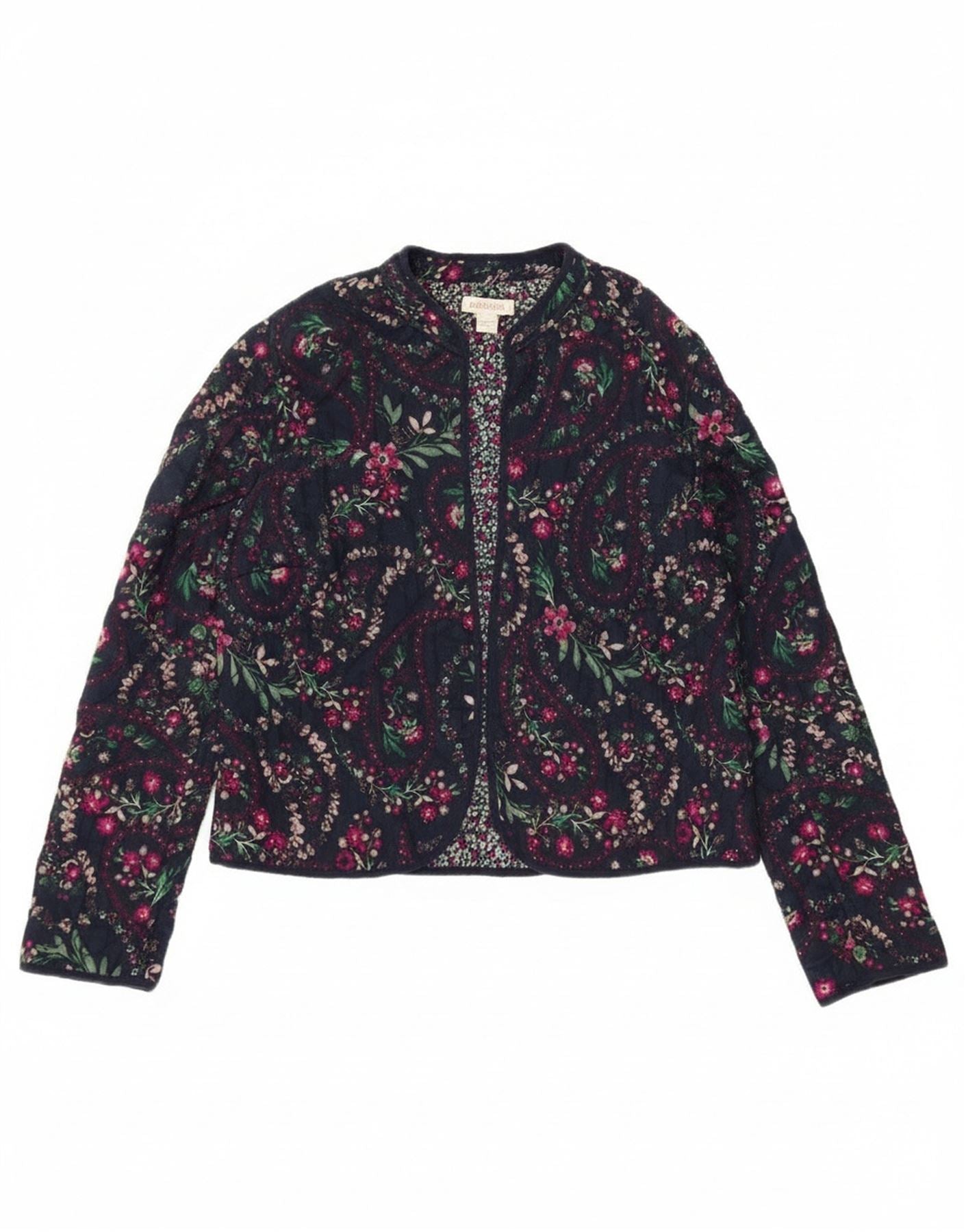 Monsoon Womens Open Blazer Jacket UK 12 Medium Navy Blue Floral Bomuld